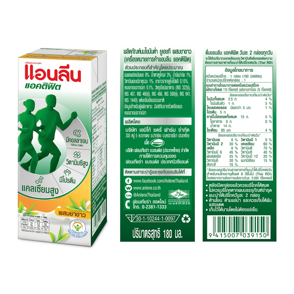 (2 ลัง) Anlene Actifit 3 แอนลีน แอคติฟิต 3 นมยูเอชทีไขมันต่ำแคลเซียมสูง รสชาขาว ยกลัง 180 มล. (48 กล่อง/ลัง)
