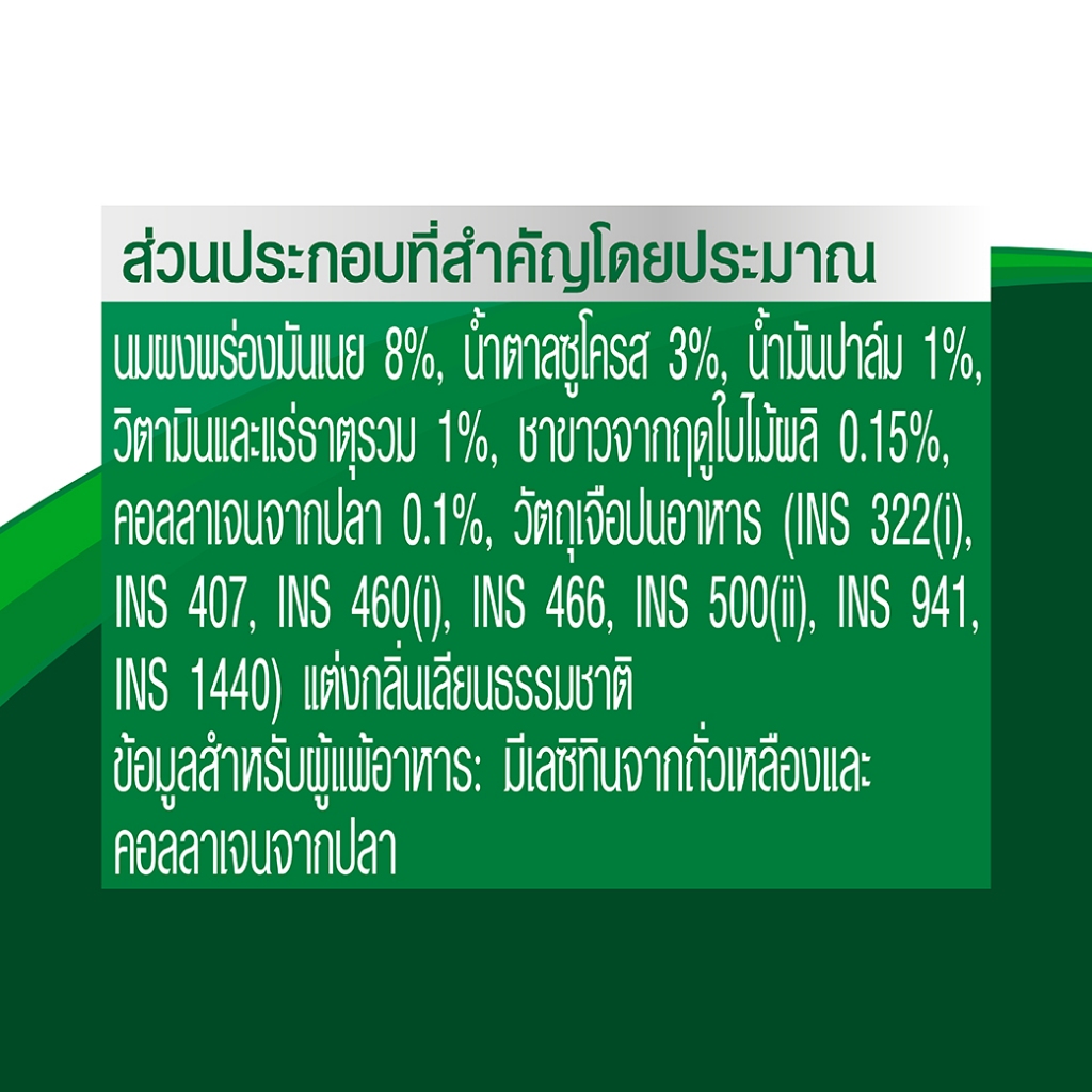 ข้อมูลสำหรับผู้แพ้อาหาร: มีเลซิทินจากถั่วเหลือง และคอลลาเจนจากปลา