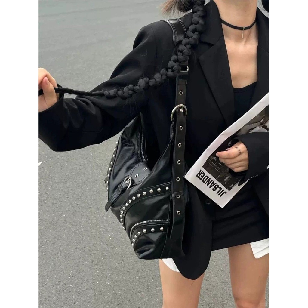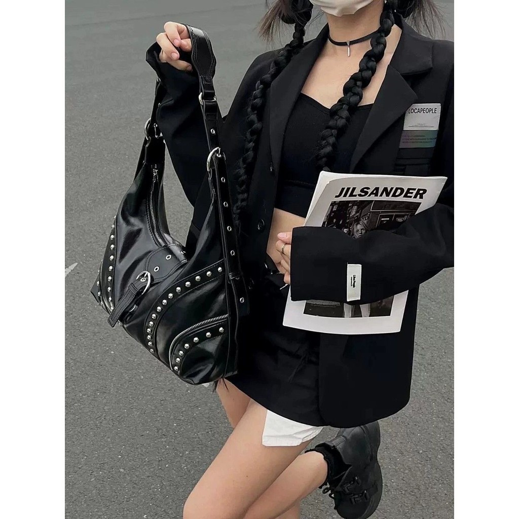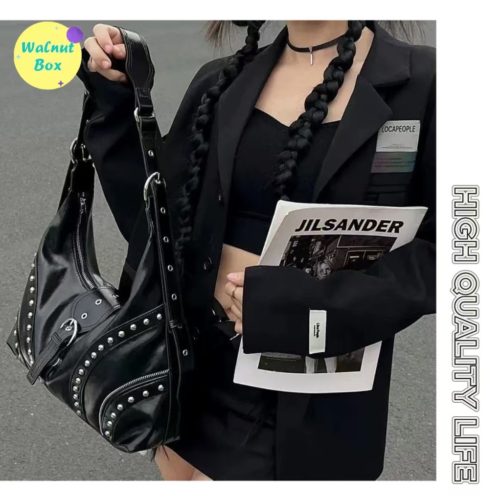 2024 ใหม่ y2k Millennium Hot Girl กระเป๋าใต้วงแขนรถจักรยานยนต์ความจุขนาดใหญ่หมุดทั้งหมดตรงกับไหล่กระเป๋าสะพายข้าง
