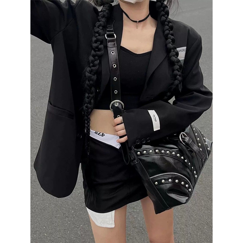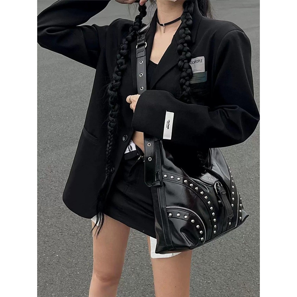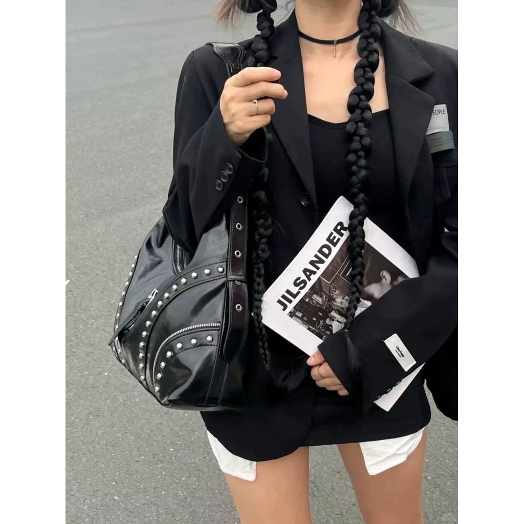 2024 ใหม่ y2k Millennium Hot Girl กระเป๋าใต้วงแขนรถจักรยานยนต์ความจุขนาดใหญ่หมุดทั้งหมดตรงกับไหล่กระเป๋าสะพายข้าง