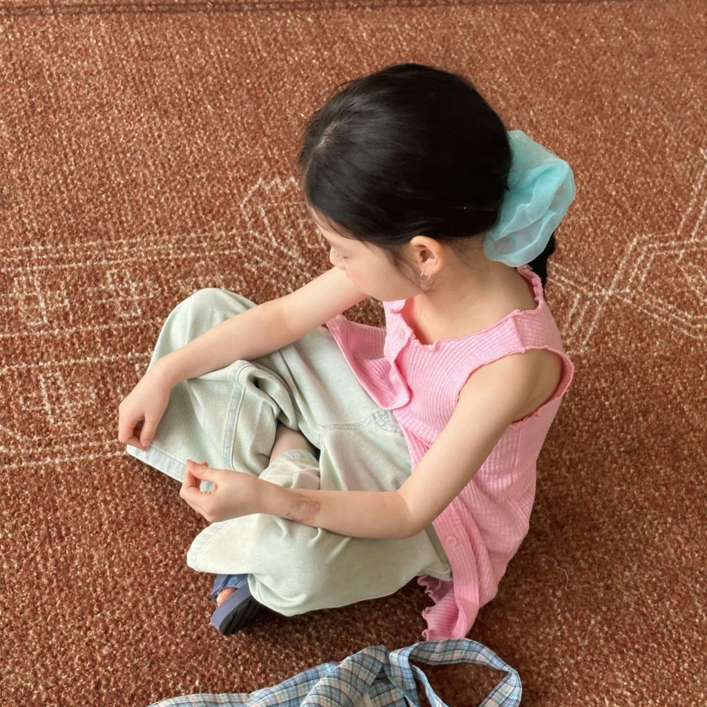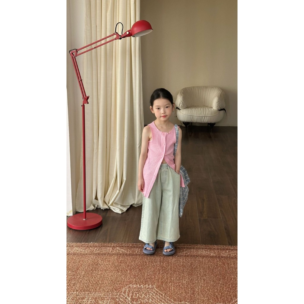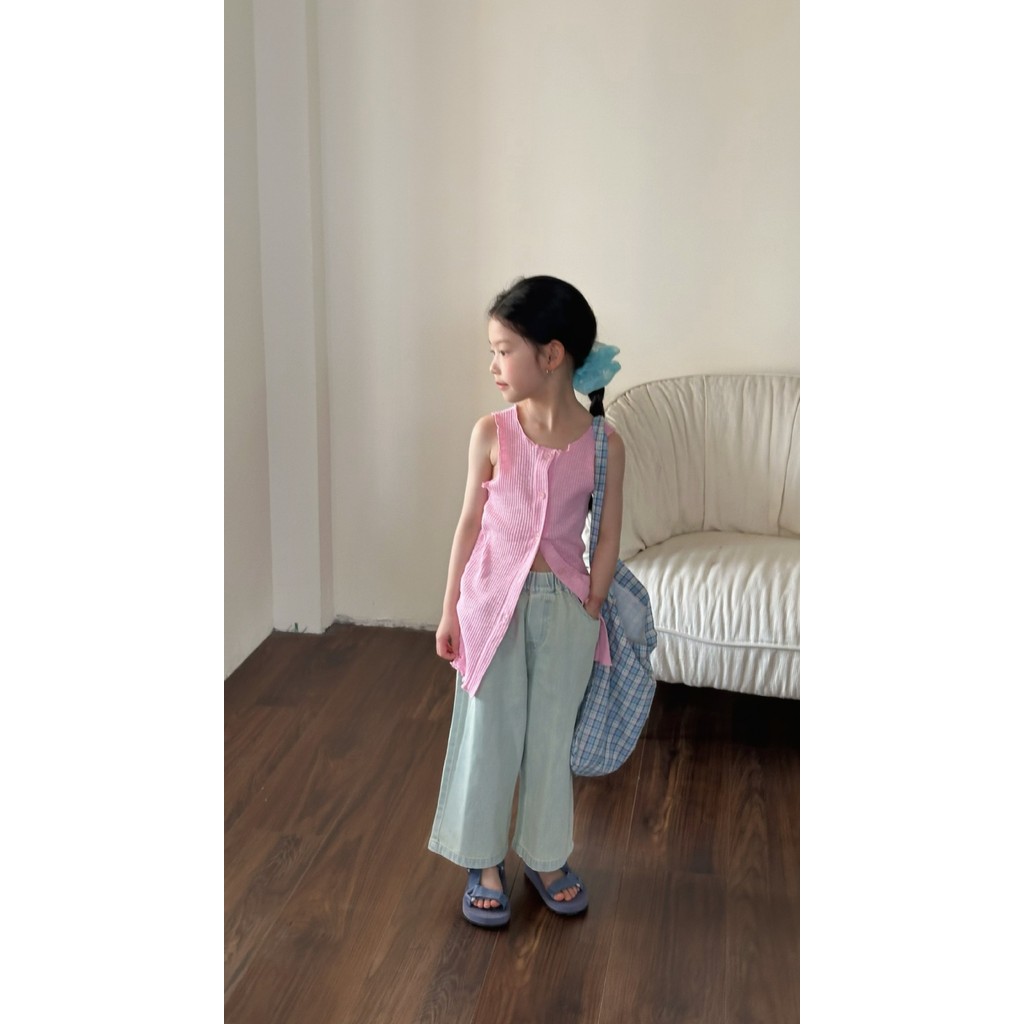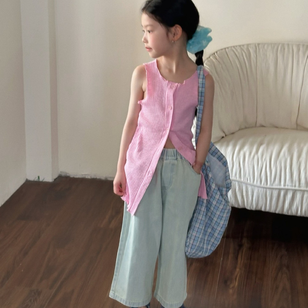 2025เสื้อผ้าเด็กใหม่ฤดูร้อนเสื้อผ้าเด็กเกาหลีเด็กผู้หญิงเสื้อกั๊กยาวปานกลางเสื้อกล้ามกระดุมแถวเดียวแขนกุดสไตล์ตะวันตก