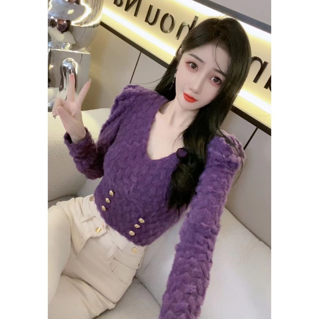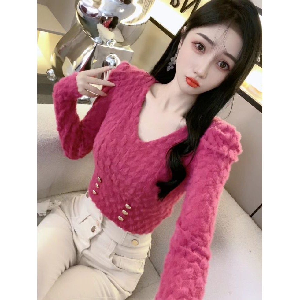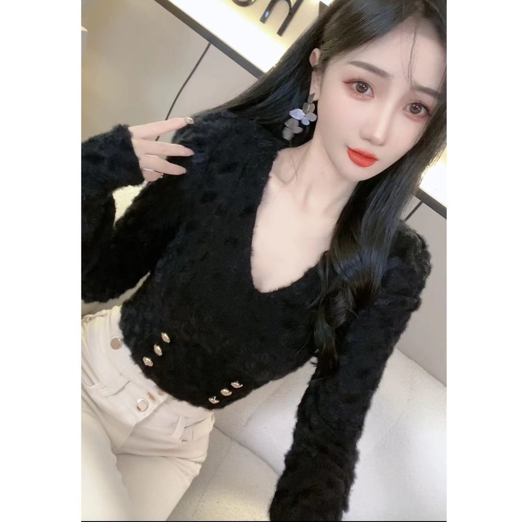 2025 ฤดูใบไม้ร่วงฤดูหนาวสไตล์ใหม่เสื้อลูกไม้สั้นคอวี Slimmer ดูรัดตัวด้านบนเซ็กซี่ Careful เครื่อง High-End เสื้อขนาดเล็ก