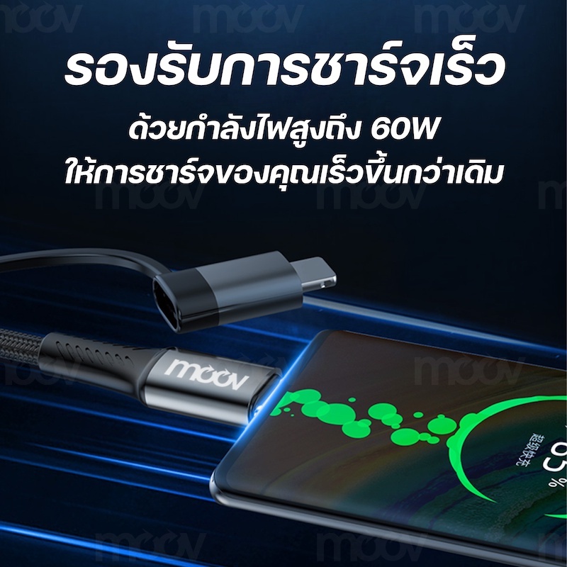 Moov CB04 และ CB05 สายชาร์จ 5 in 1 USB / Type C / L Cable / Micro ชาร์จเร็วสูงสุด 60W รองรับ PD Fast Charge เหมาะสำหรับคนที่ไม่ต้องการพกสายชาร์จหลายๆสาย สายหลัก Type C to Type C มาพร้อม Adapter ตัวแปลงสายให้รองรับได้ทุกอุปกรณ์ สะดวกสบายด้วยสาย CB05 เพียงเส้นเดียว