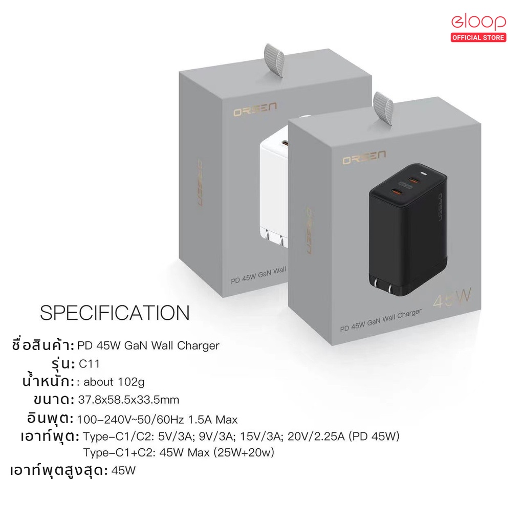 รวมหัวชาร์จเร็ว Eloop C11 / C12 GaN รวมหัวชาร์จเร็ว PD สูงสุด 65W QC Apapter