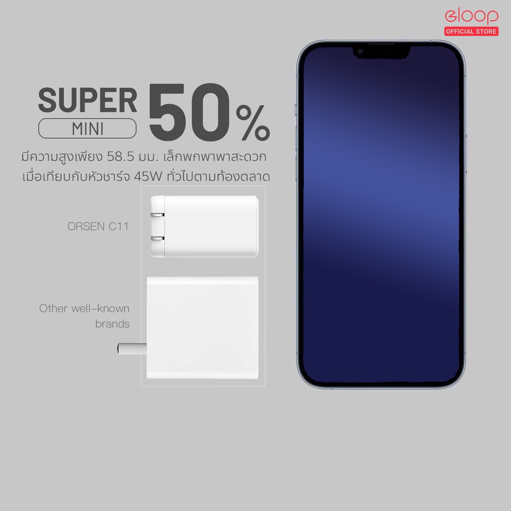 ・ ขนาดเล็กกว่าหัวชาร์จทั่วไปถึง 50%