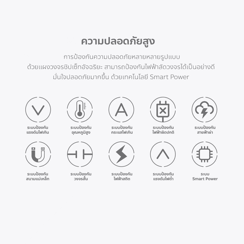 ・ มีระบบตัดไฟอัตโนมัติ หากเกิดไฟเกิน ไฟกระชาก