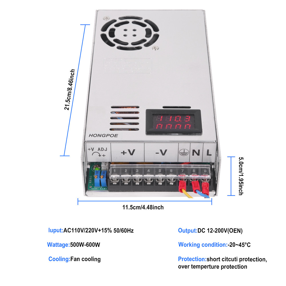 แหล่งจ่ายไฟสวิทช์ปรับได้สำหรับ Led 500W 600W 1000W 1500W
