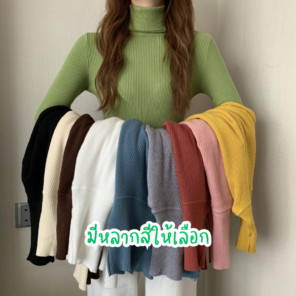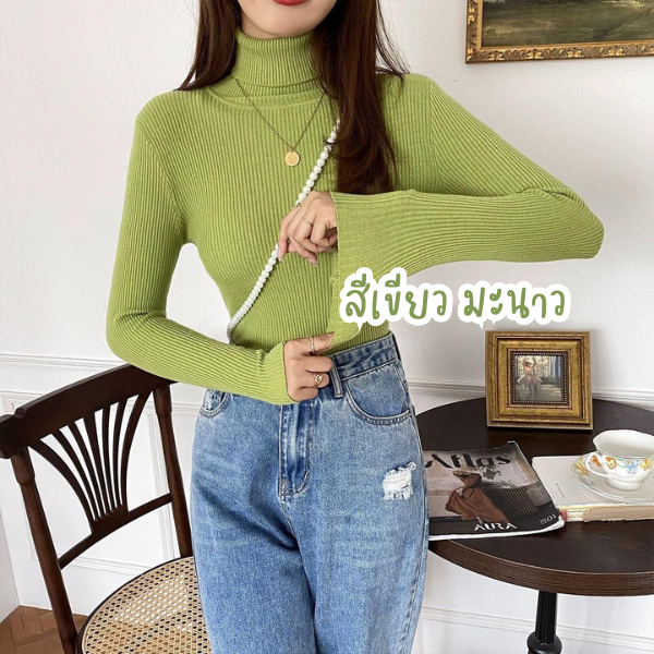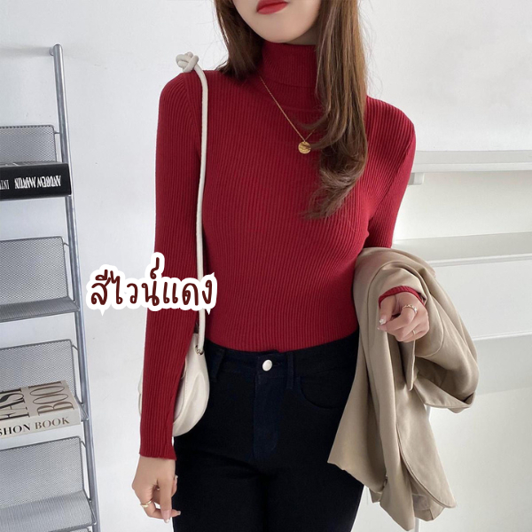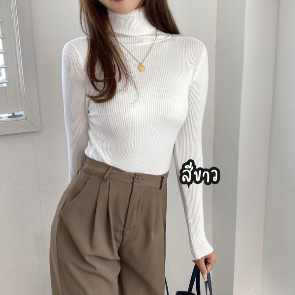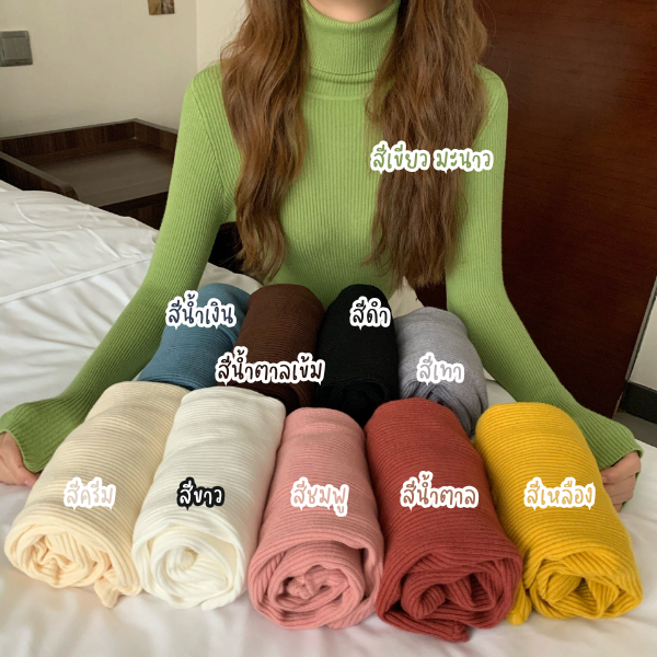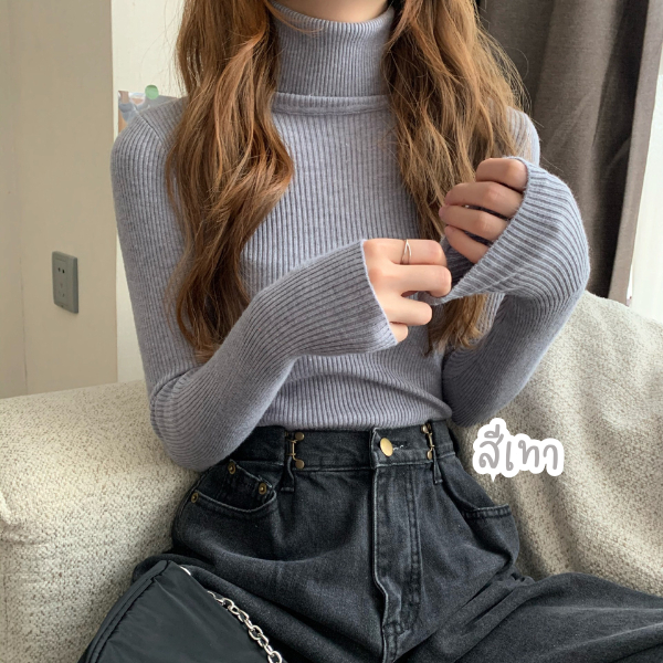 ผ้าไหมพรม กึ่งคอเต่า แขนยาว เนื้อผ้านิ่ม ใส่สบาย ไม่คัน