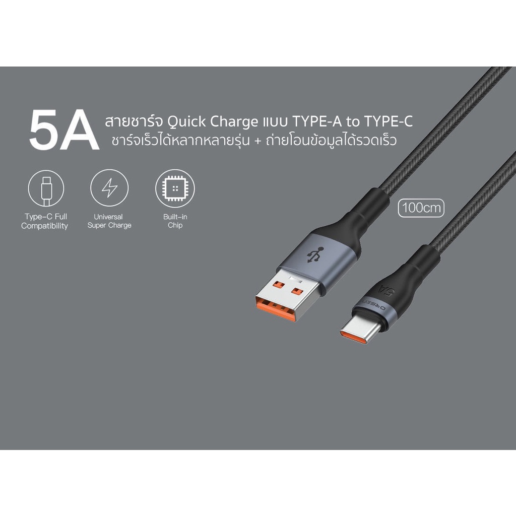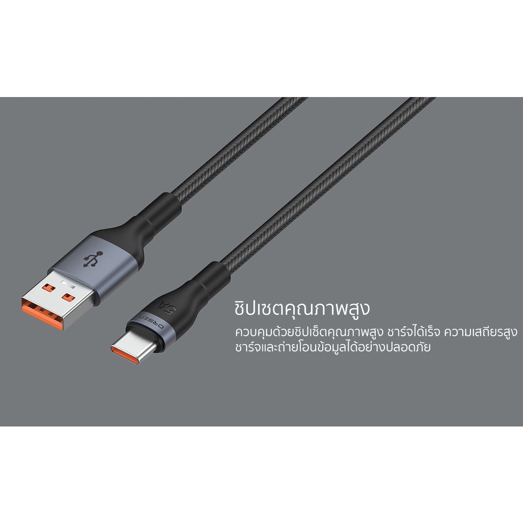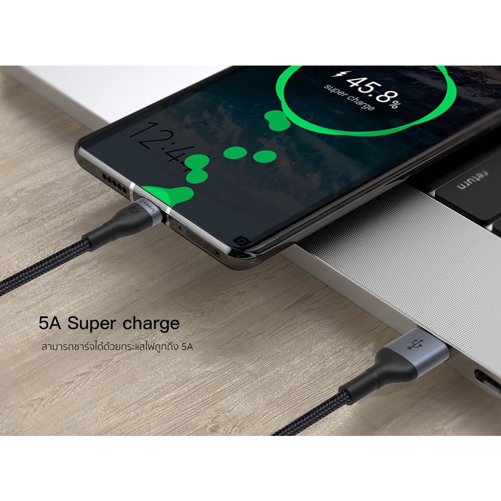 Eloop S7 สายชาร์จ USB-A to Type C 5A ความยาว 1 เมตร รองรับถ่ายโอนข้อมูล วัสดุไนลอนถัก แข็งแรง ทนทาน ไม่ขาดง่าย# คุณสมบัติสินค้า