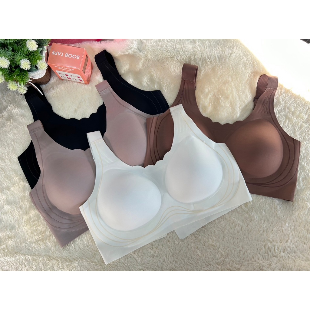 บราพรีเมี่ยมไร้ขอบ ไร้โครง เนื้อผ้ายางพารา2 ชั้น มีความนิ่มลื่น ตัวผ้ายืดเด้ง ใส่กระชับไม่อึดอัด ผ้าเย็นให้ความรู้สึกสบาย ด้านข้างเก็บข้าง เก็บหลังได้ดีมาก ด้านหลังมี 4 ตะขอ