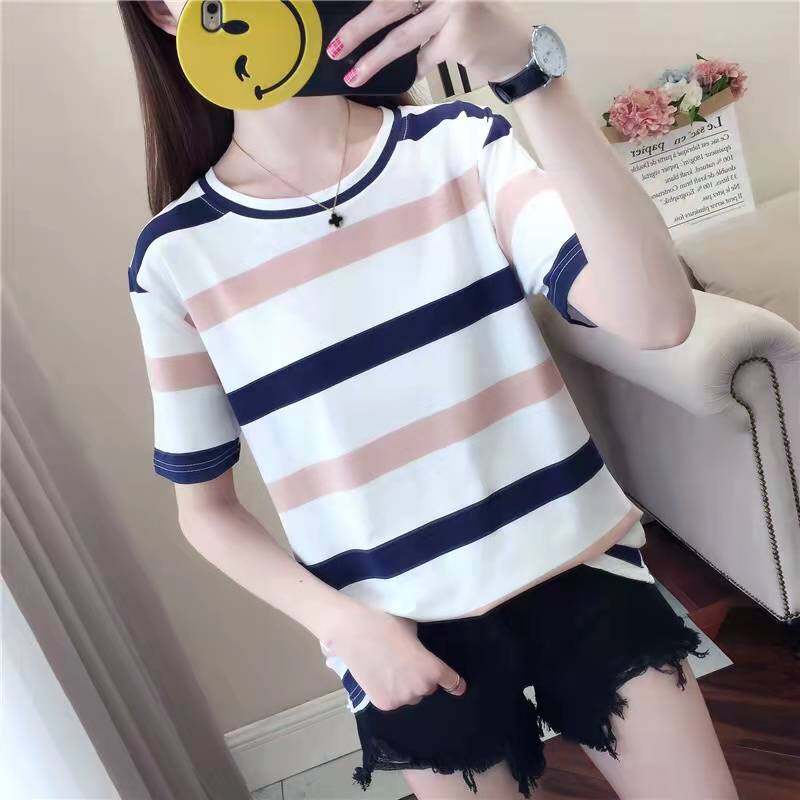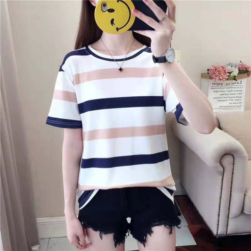 รายละเอียดสินค้า New!! เสื้อยืดแฟชั่นผู้หญิงเกาหลี ลายริ้ว น่ารัก แนวหวานสดวัยรุ่นใส่น่ารักมาก คอกลมแขนสั้น เนื้อผ้าดีใส่สบาย New Fashion women’s