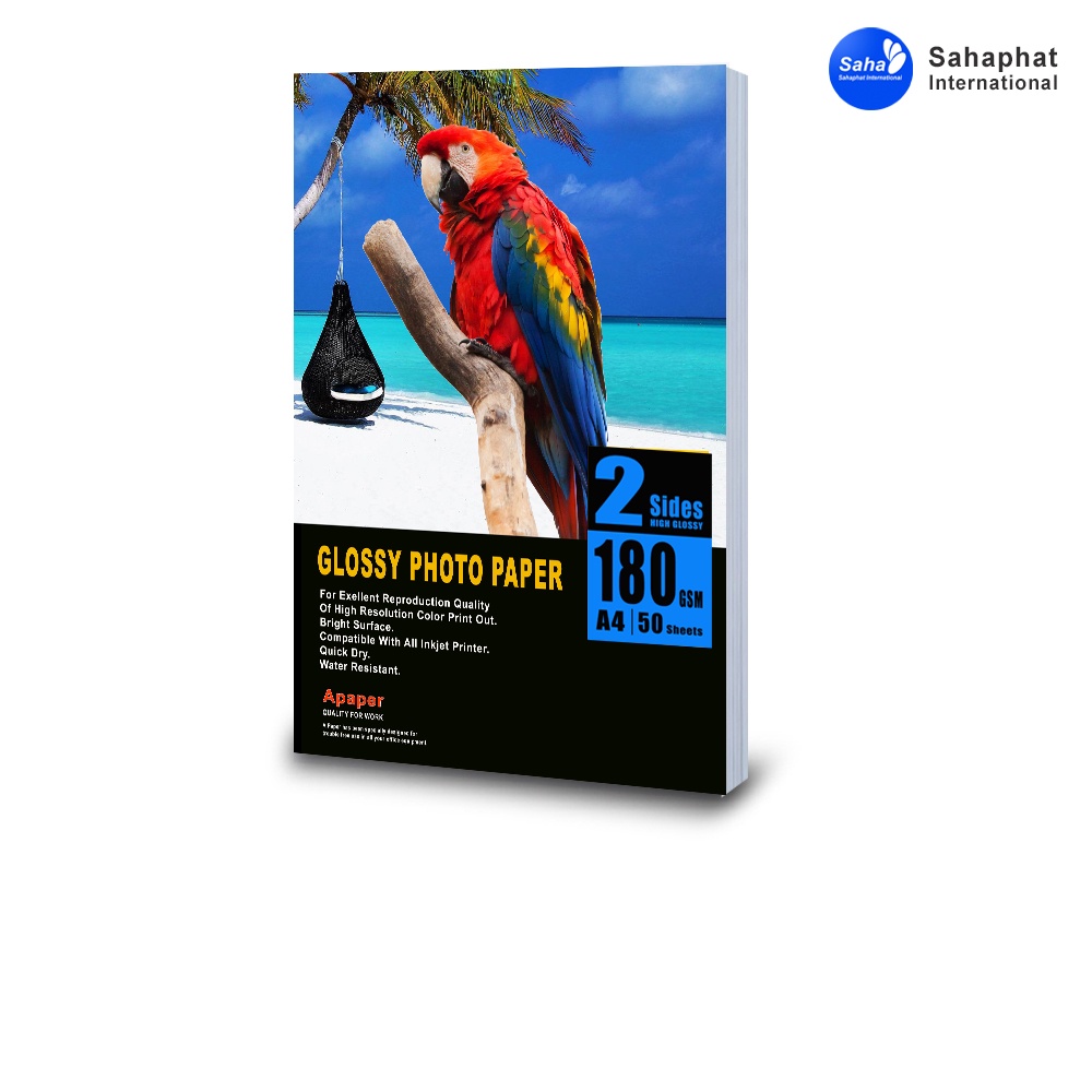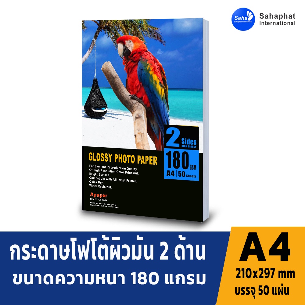 A PAPER กระดาษโฟโต้ 180 แกรม ผิวมัน 2 หน้า 50 แผ่น a4 กระดาษอิงค์เจ็ท กระดาษโฟโต้ผิวมัน ปริ้นรูป กระดาษปริ้นรูป