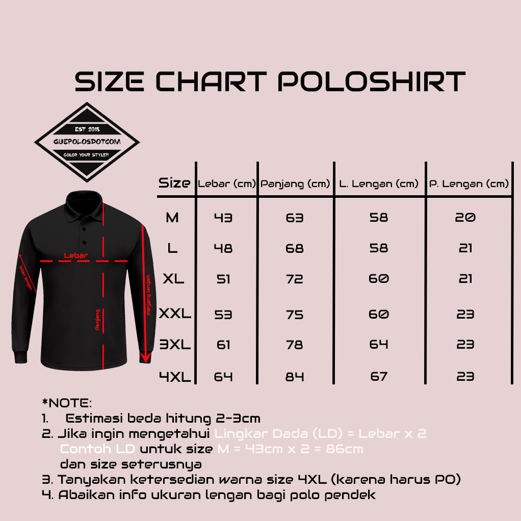 สำหรับ GUEPOLOS LONG POLO ต่อไปนี้คือแผนภูมิขนาด (รอบอกกว้าง x เสื้อสูง) และ (แขนยาว x แขนเสื้อกว้าง):