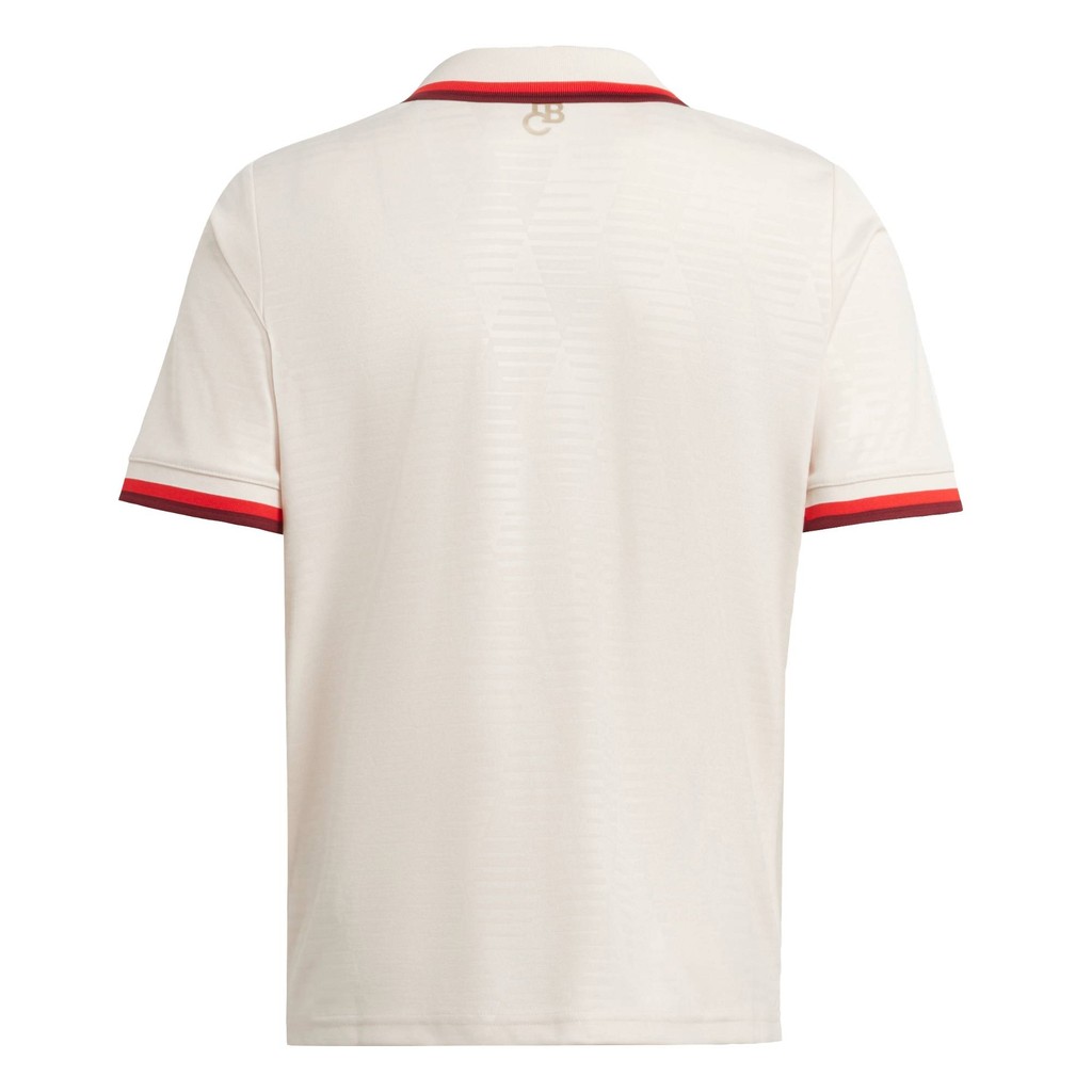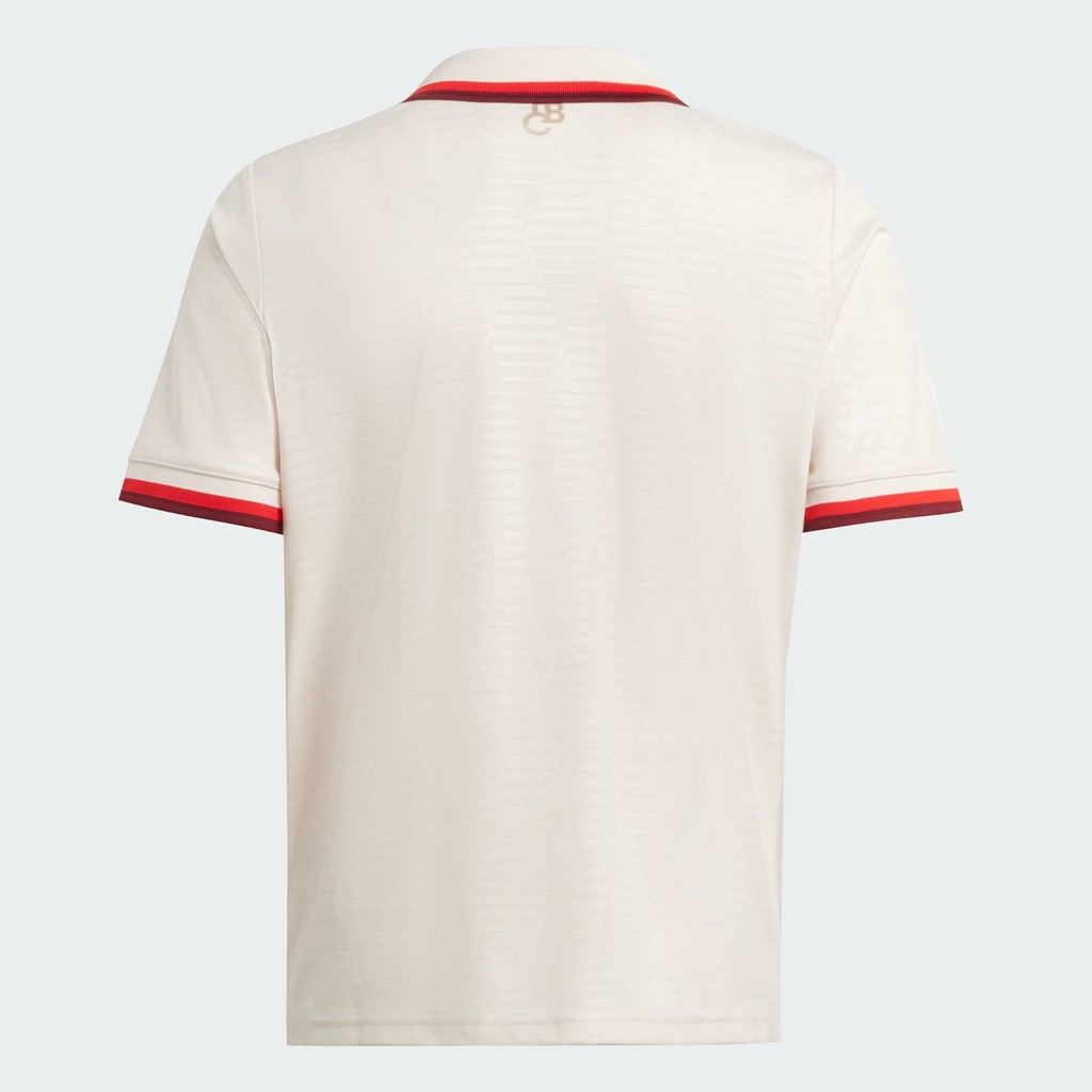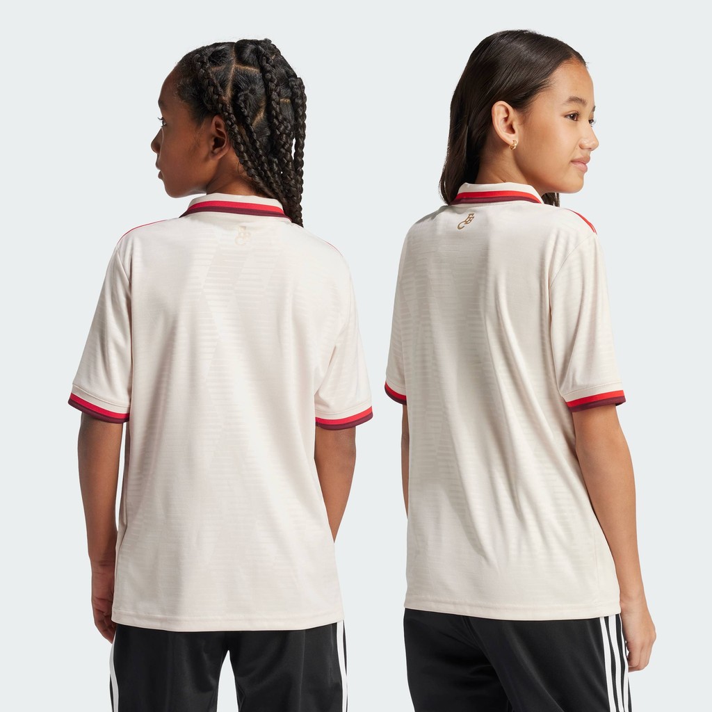 เสื้อฟุตบอลชุดที่สามของสโมสรบาเยิร์นมิวนิกสำหรับเด็กโตตัวนี้มาในดีไซน์เรียบง่ายสุดคลาสสิก ผสานองค์ประกอบอันล้ำค่าจากเอกลักษณ์ของสโมสรและความเป็นอาดิดาสเข้าด้วยกัน โลโก้ Trefoil คอโปโล และตราสโมสรแบบย้อนยุคคุมโทนความโก้หรู โดยปรากฏโฉมอย่างเด่นชัดท่ามกลางกราฟิกรูปเพชรเงาวาวแบบทึบที่กลมกลืนกับตัวเสื้อ นอกจากเสน่ห์ที่สะดุดตาในทันทีแล้ว เทคโนโลยีจัดการความชื้น AEROREADY ยังเพิ่มความสบายที่ทำให้เสื้อตัวนี้เหมาะกับการอวดความคลั่งไคล้ของคุณในฐานะแฟนบอล ผลิตภัณฑ์ชิ้นนี้ผลิตจากวัสดุรีไซเคิล 100% เราช่วยกันลดขยะ ลดการพึ่งพาทรัพยากรที่มีอยู่อย่างจำกัด และลดปริมาณการปล่อยคาร์บอนที่เกิดจากสินค้าที่เราผลิต โดยนำวัสดุเดิมที่เคยผลิตไปแล้วกลับมาใช้ซ้ำอีกครั้ง