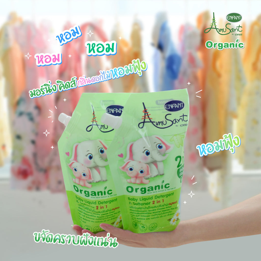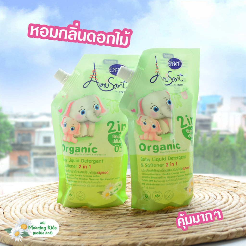 ผลิตภัณฑ์ซักผ้าเด็กผสมน้ำยาปรับผ้านุ่ม 2 in 1 สูตรออแกนิค 600 ml. ใช้ได้ตั้งแต่แรกเกิด