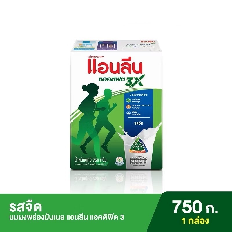 Anlene Actifit 3 แอนลีน แอคติฟิต 3 นมผงพร่องมันเนยแคลเซียมสูงแบบชง 750 กรัม รสจืด