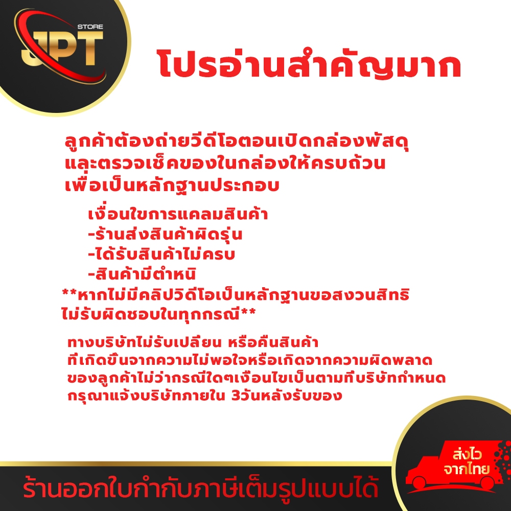 ลูกค้าต้องถ่ายวีดีโอตอนเปิดกล่องพัสดุ สินค้าต้องยังไม่ถูกใช้งาน สามารถคืนของได้ภายใน 3วัน หลังจากรับของ