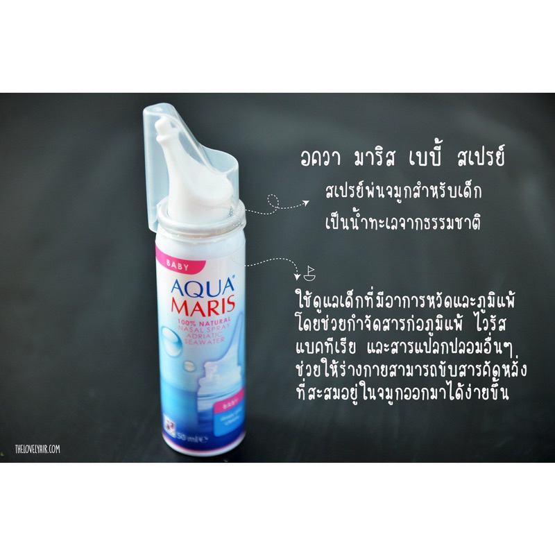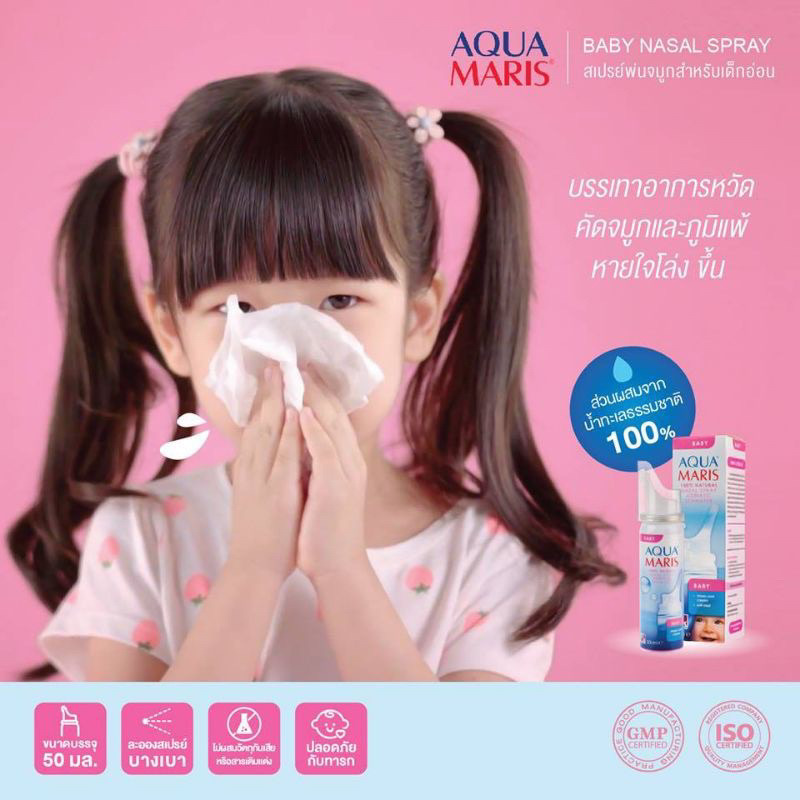 สเปรย์พ่นจมูกสำหรับเด็กอ่อนของ ‘อควา มาริส’ เหมาะสำหรับใช้ดูแลเด็กที่มีอาการหวัดและภูมิแพ้ โดยช่วยกำจัดสารก่อภูมิแพ้ ไวรัส แบคทีเรีย และสารแปลกปลอมอื่น ๆ ช่วยให้ร่างกายสามารถขับสารคัดหลั่งที่สะสมอยู่ในจมูกออกมาได้ง่ายขึ้น ทั้งยังช่วยเพิ่มความชุ่มชื้นและเสริมสร้างสุขอนามัยของจมูกด้วย