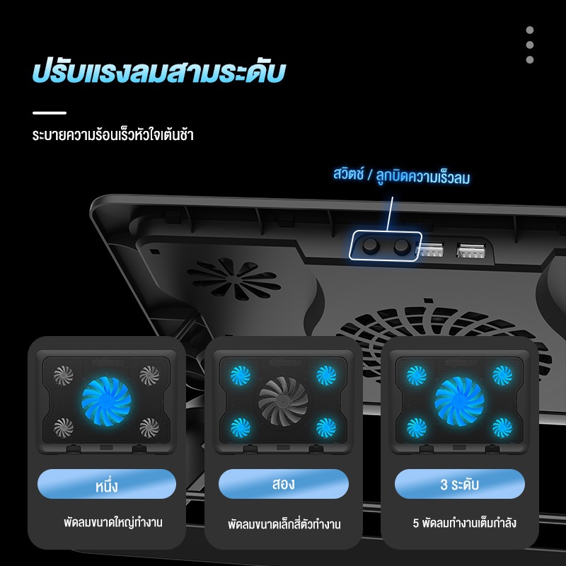3 ระดับ: 5 พัดลมทำงานเต็มกำลัง