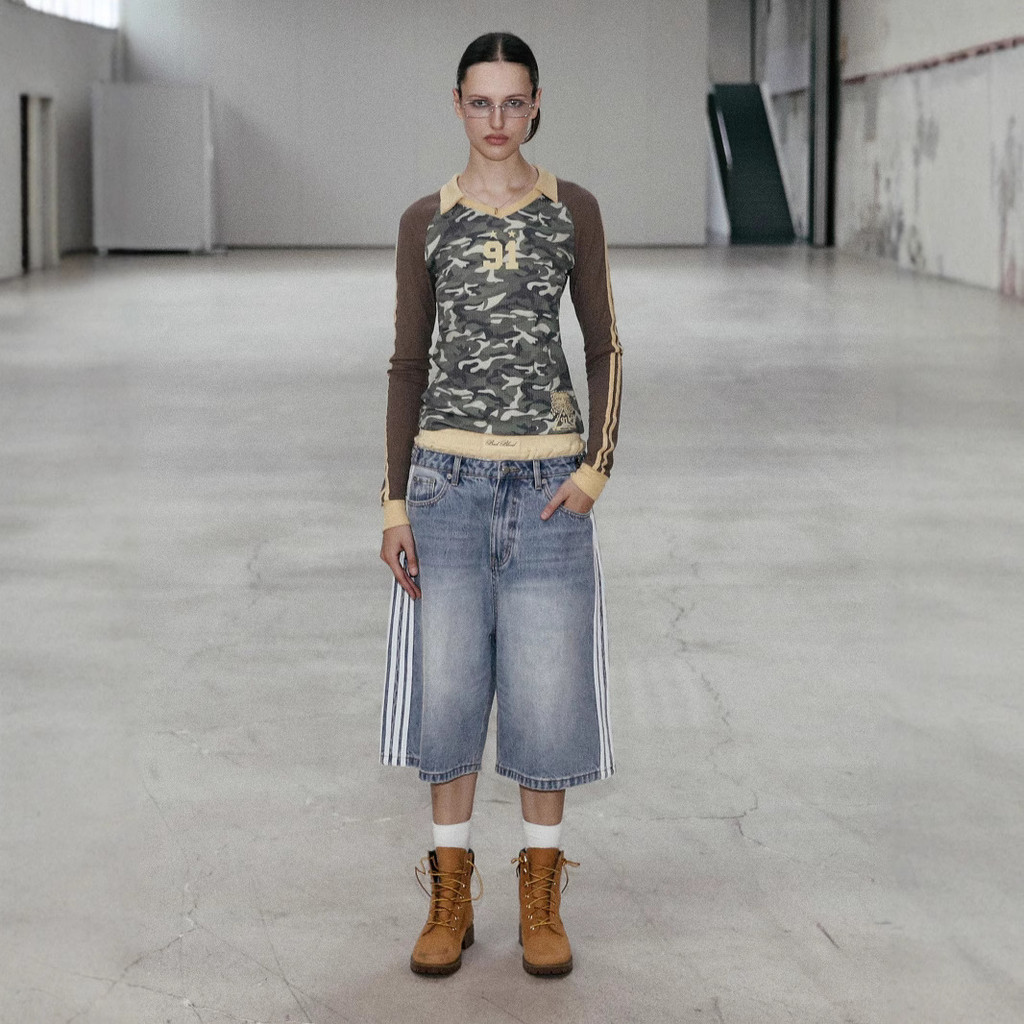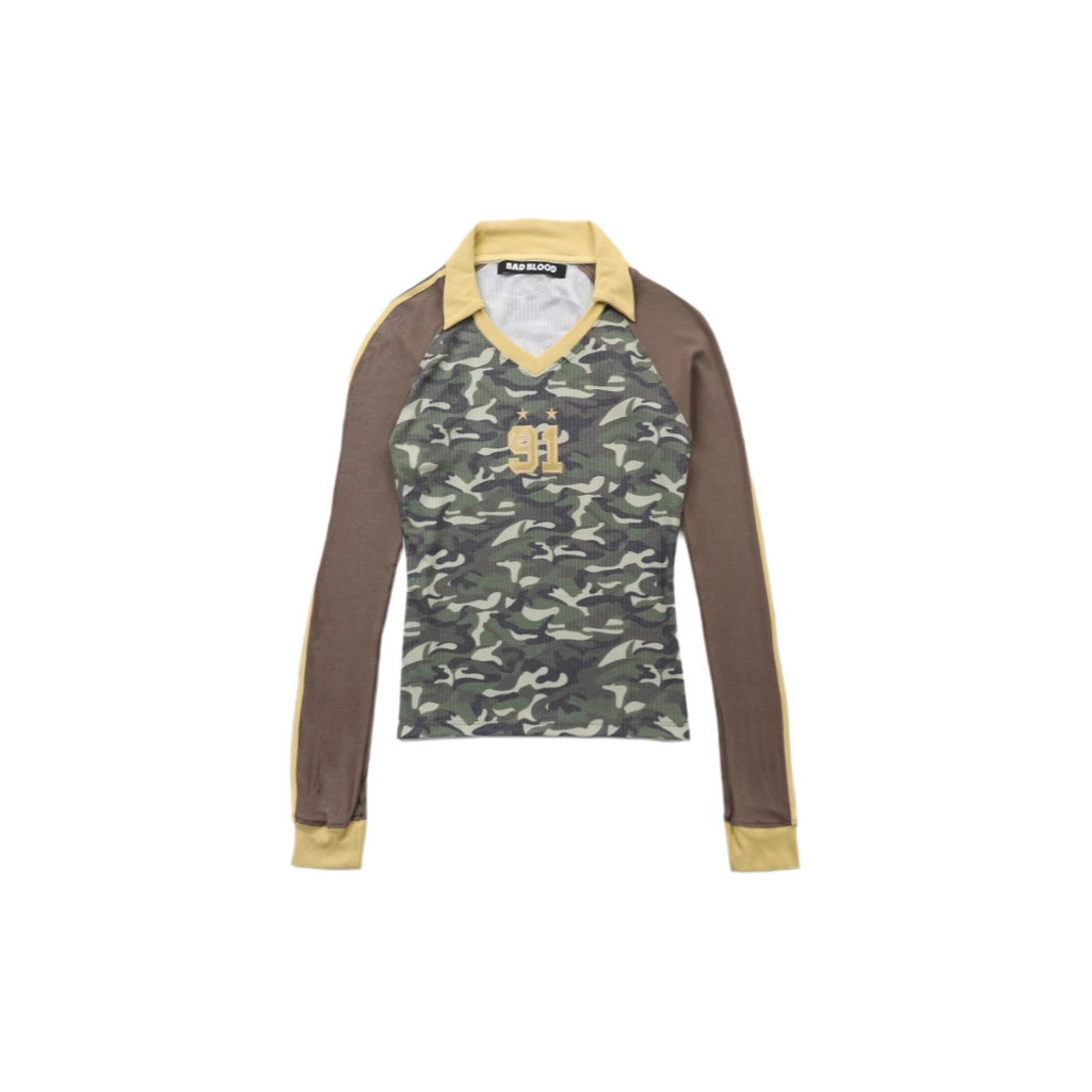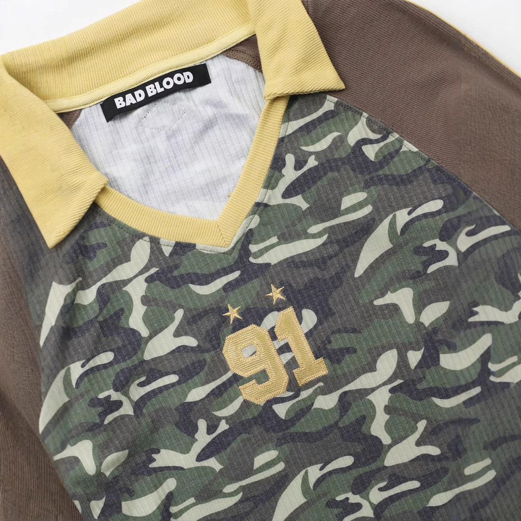 คอวีดีไซน์คอวีคู่ แขนเสื้อลำลอง รายละเอียดเส้นสองเส้นบนแขนเสื้อ