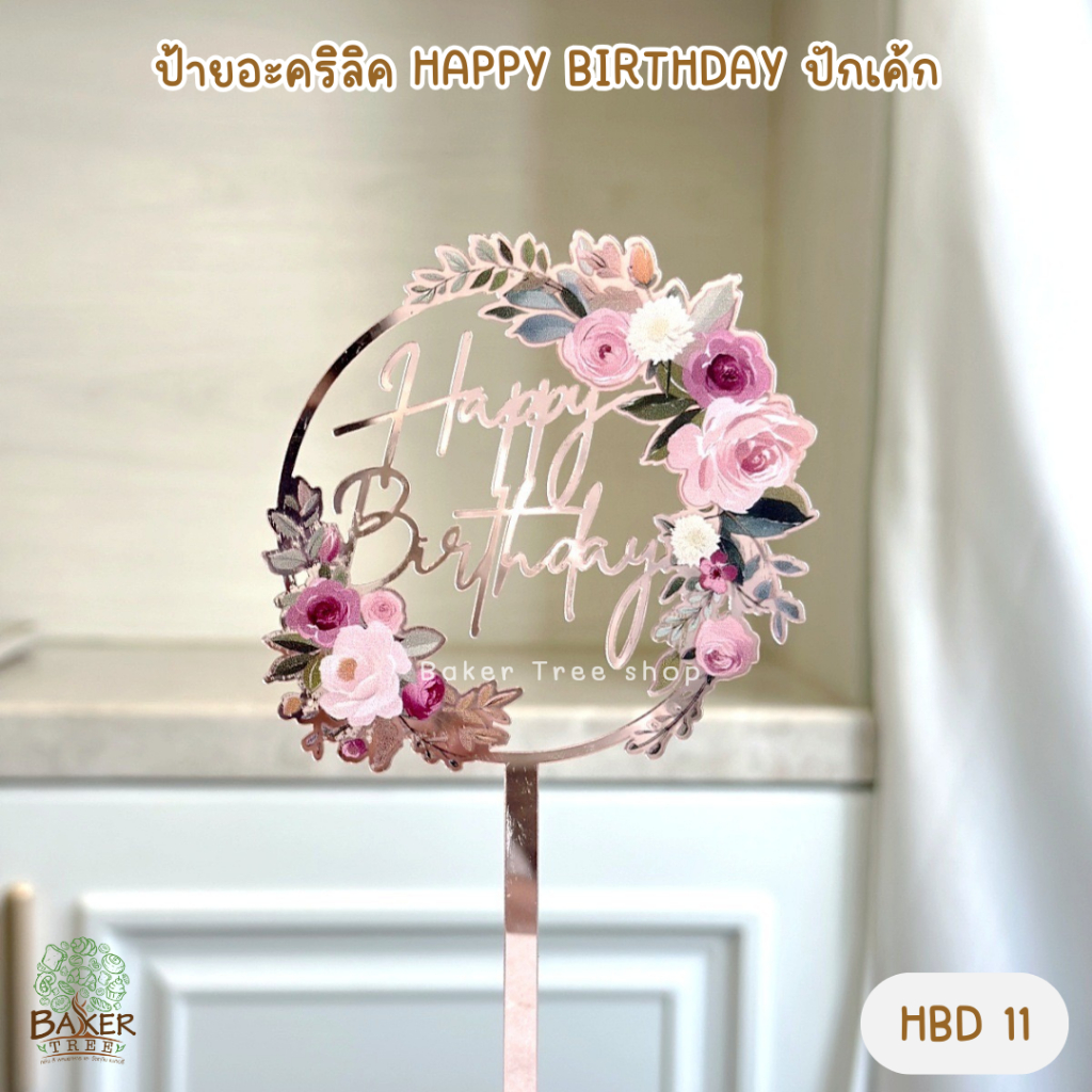 ป้ายวันเกิด ป้ายเค้กอะคริลิค ป้าย Happy birthday ปักเค้ก