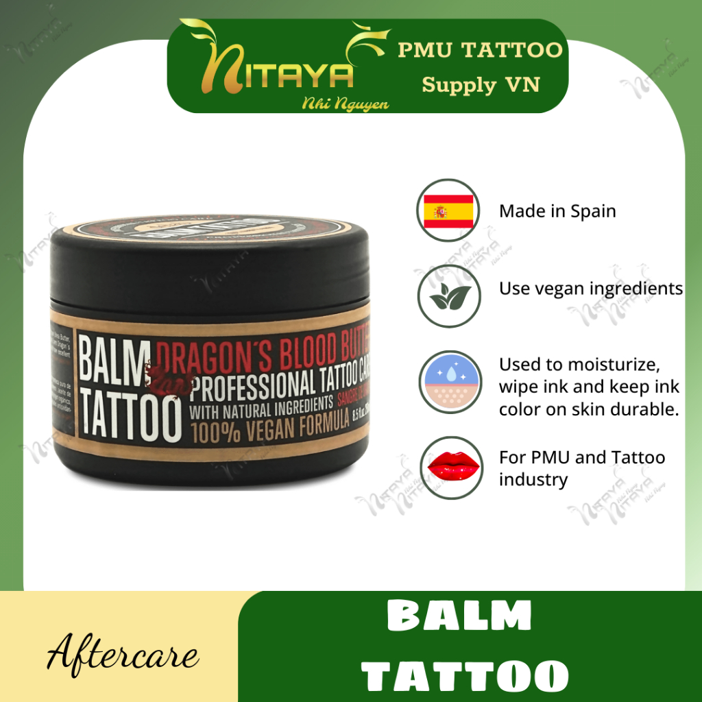 Balm Tattoo เป็นบาล์มดูแลผิวเฉพาะทางหลังการใช้ เครื่องสัก ไม่ว่าจะเป็น การสักลวดลาย หรือ การสักเพื่อความงาม (เช่น คิ้ว ริมฝีปาก) เนื้อสัมผัสนุ่ม ช่วยให้ผิวชุ่มชื้น ลดการแห้ง ลอก และช่วยให้สีติดทนนาน