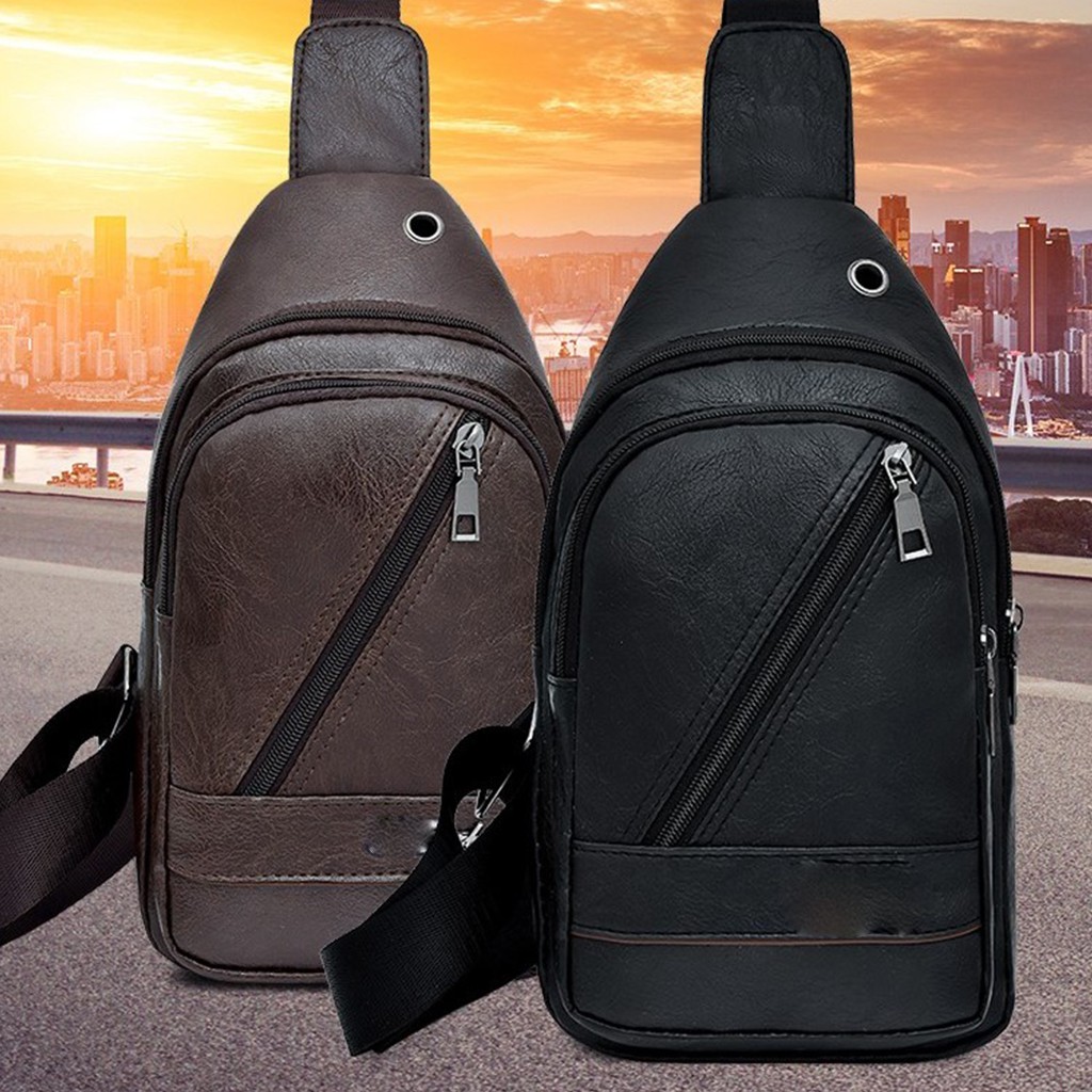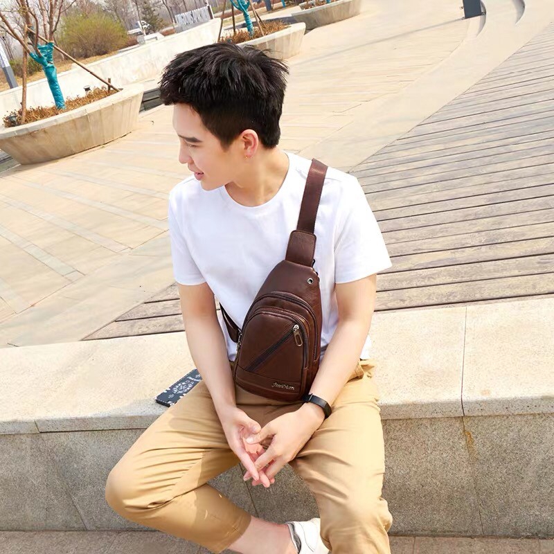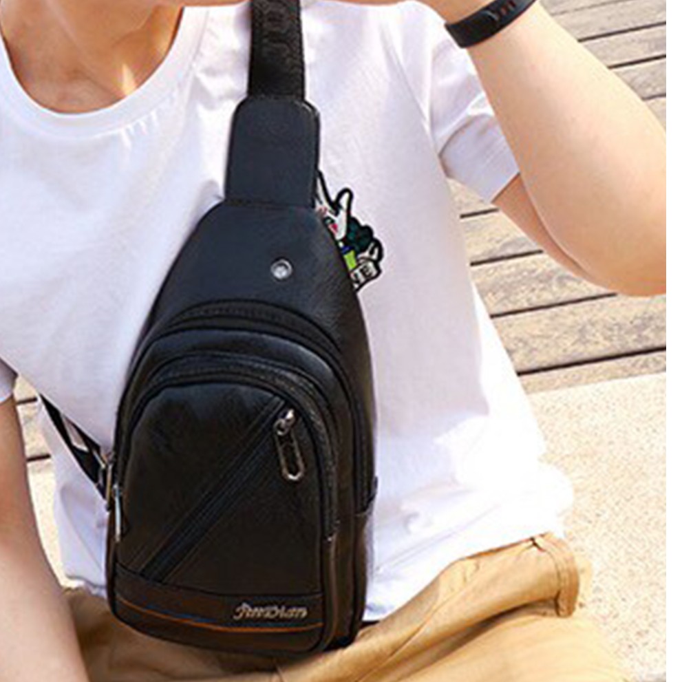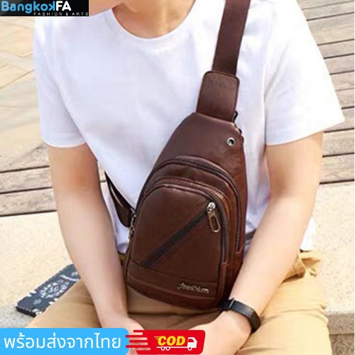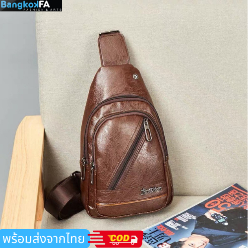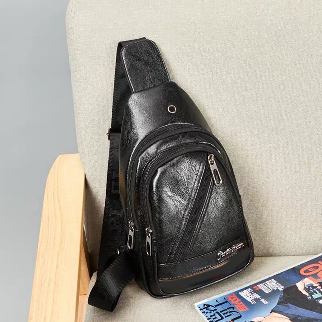 bangkoklist(BA937) -H1 กระเป๋าคาดอกหนังเงามีเส้นคาด กระเป๋าผู้ชาย