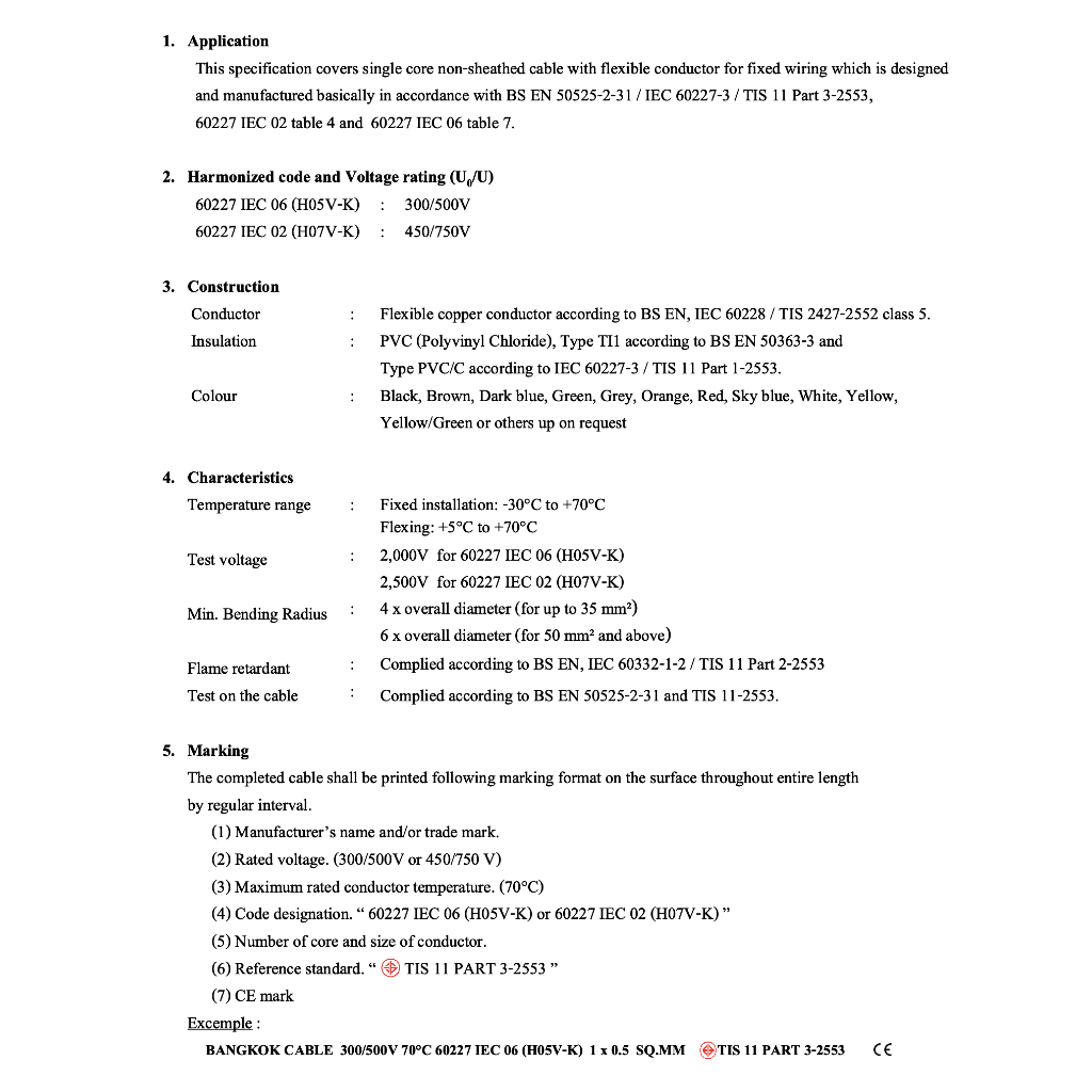 – H05V-K / H07V-K สามารถที่จะรองรับแรงดันไฟฟ้าที่ 750V ในขณะที่ VSF สามารถรองรับแรงดันไฟได้เพียง 300V