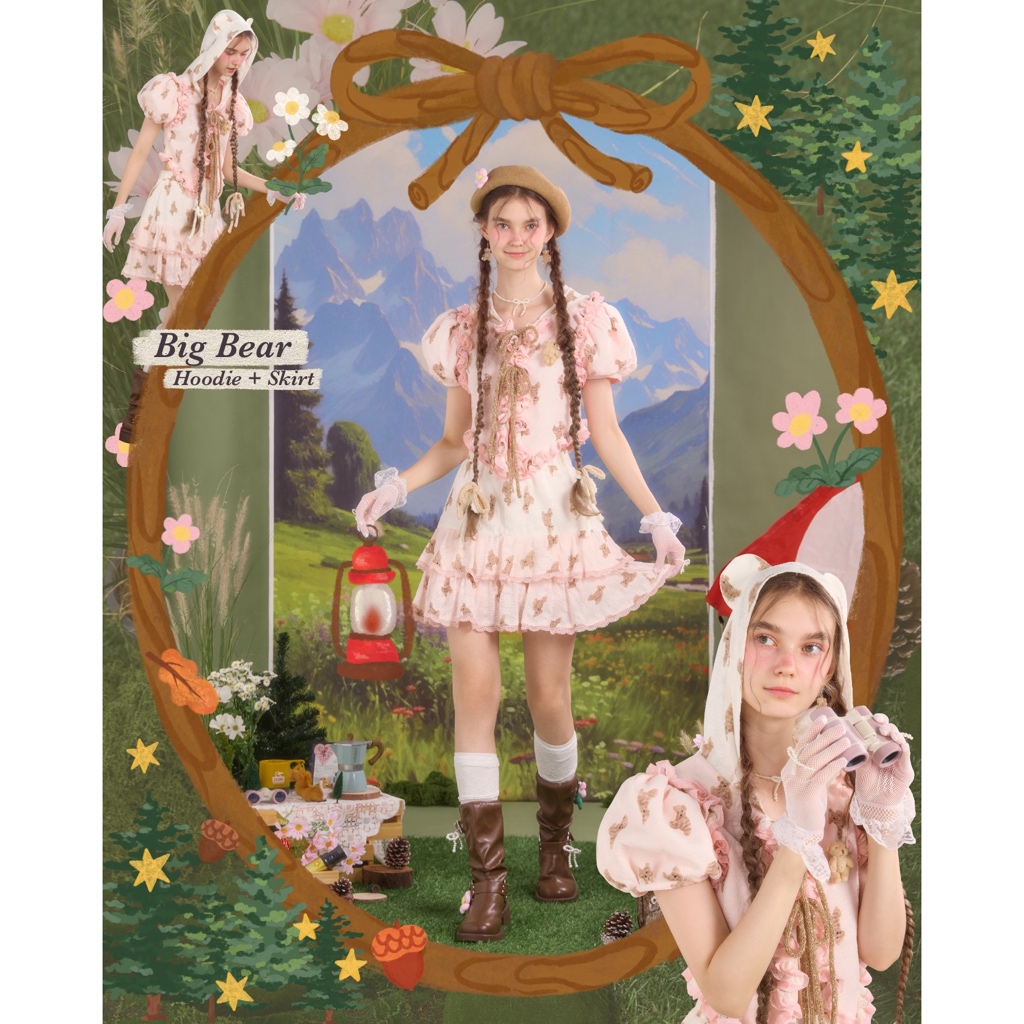 Big Bear set ❄️ ชุดเซ็ตลูกไม้สกรีนลายหมี ผ้านุ่มมาก ยืด ไม่Fixตัวมากก แต่ความเก๋คือ บรึ้มม มีน้องหมีตัวใหญ่มากเป็นเข็มกลัดติดที่อกด้วย มาเริ่มเลออ ตัวเสื้อเป็นแบบสวมมีฮู๊ดหูหมี แขนเสื้อสั้นพองตุ๊กตาใหญ่ โดดเด่นด้วยระบายรูดรัวๆตามขอบตะเข็บชุด ตัดสีด้วยลูกไม้สีชมพูนัวๆจึ้งง เก๋ๆที่ผูกโบว์กลางตัวเป็นสายไหมพรมถักสีน้ำตาลคาราเมล มีความเว้าชายเสื้อ โชว์ตัวเล็กตัวน้อยเอวลอย❣️ ตามด้วยตัวกระโปรงใส่เข้าเซ็ตเป็นทรงเอระบายบานตัดต่อผ้าอีก2ชั้น มีความสาวเวียด เบาๆ ขอบเอวเป็นยางยืด จะเอวต่ำ หรือดึงเอวสูงคือได้เลย เป็นคู่เซ็ตที่ใส่ได้ประจำวัน สบายๆ แมตช์กับรองเท้าอะไรก็ง่ายไปหมด มีให้เลือกถึง2สีนะคะ โทนนัวๆชมพูขาวออฟไวท์ ต้องหาซื้อหามีแล้วค่าา