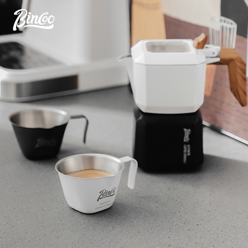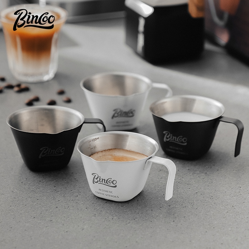 Bincoo ถ้วยตวงเอสเปรสโซ 304 สแตนเลสออนซ์ถ้วยสกัดพร้อมถ้วยนมขนาด 100ML