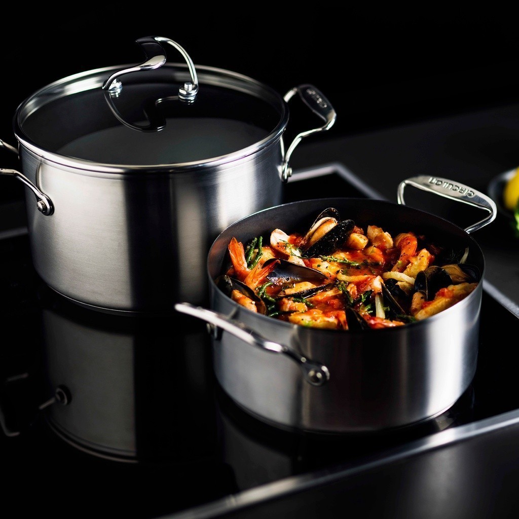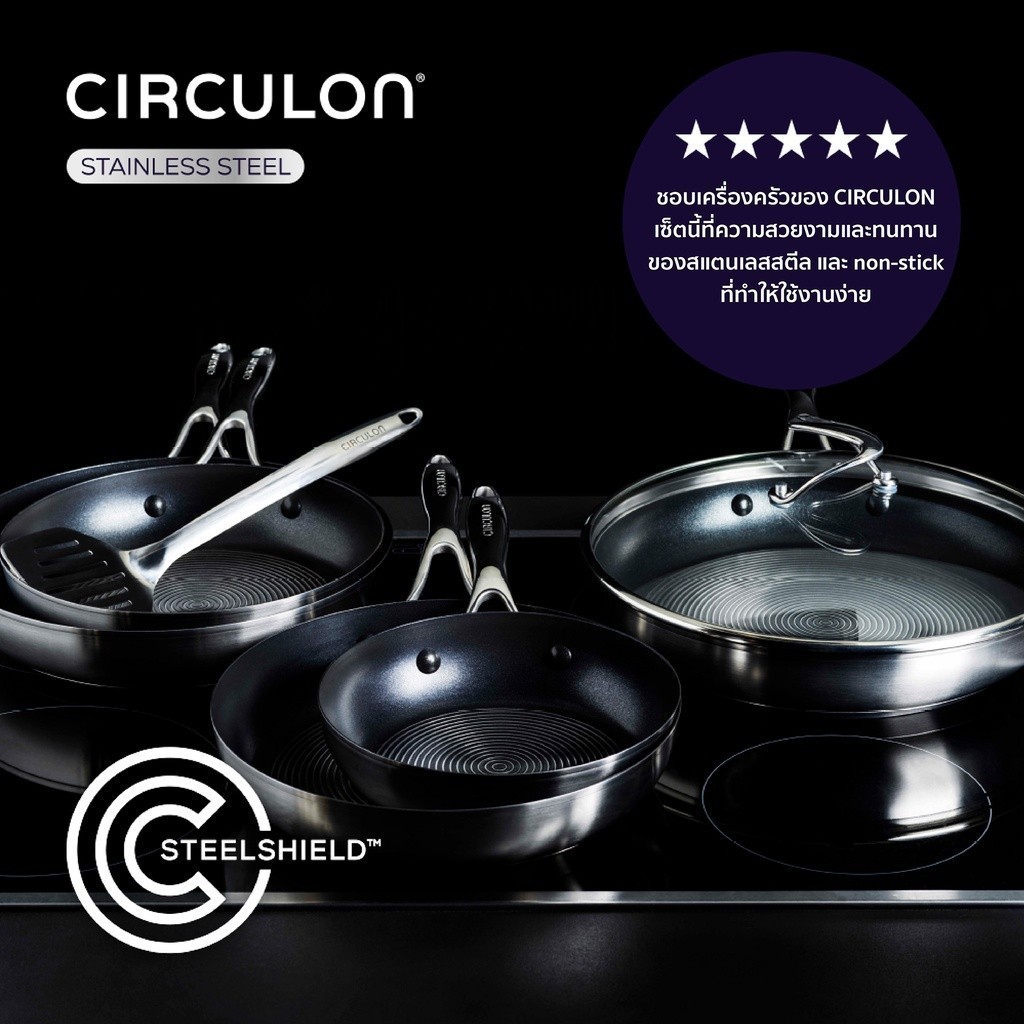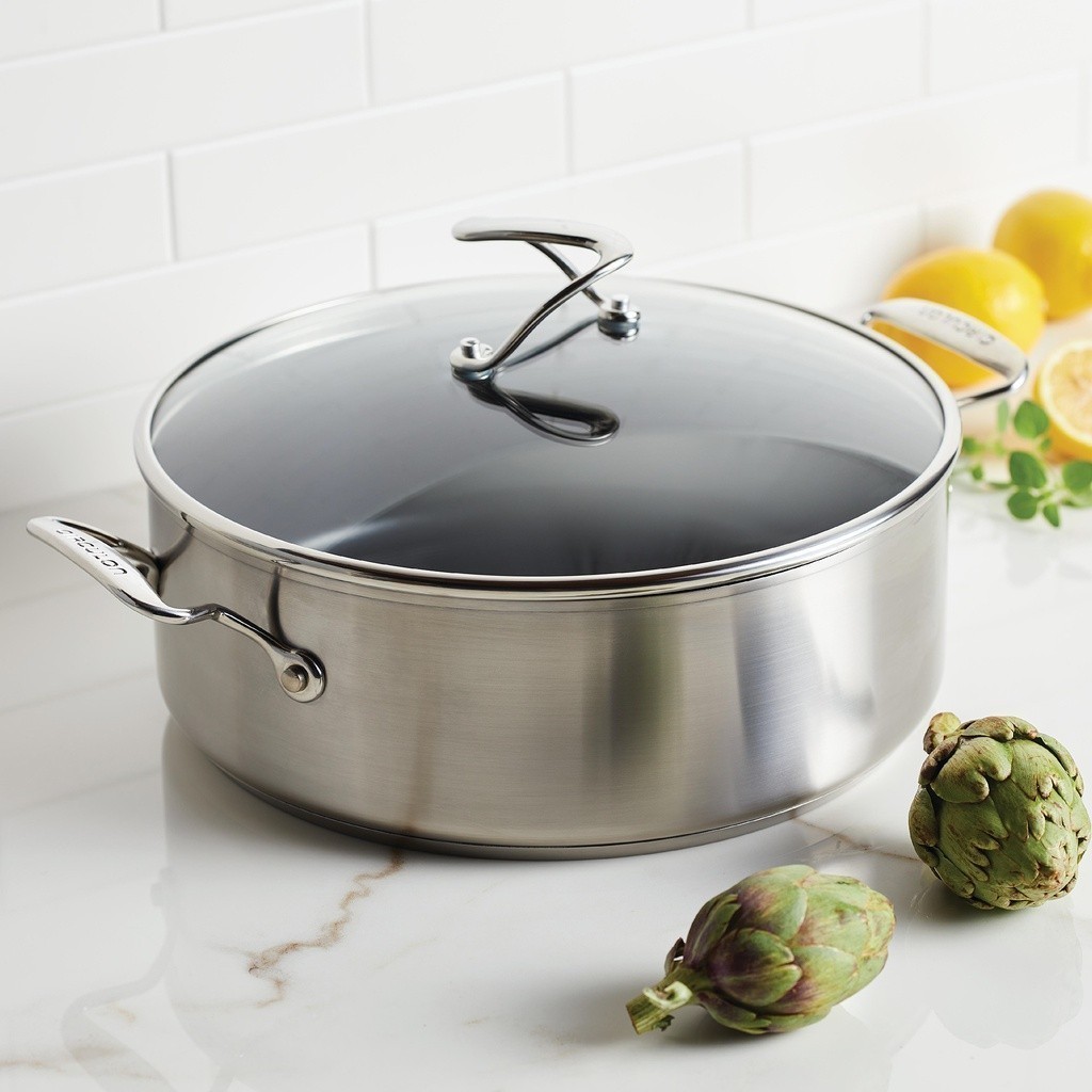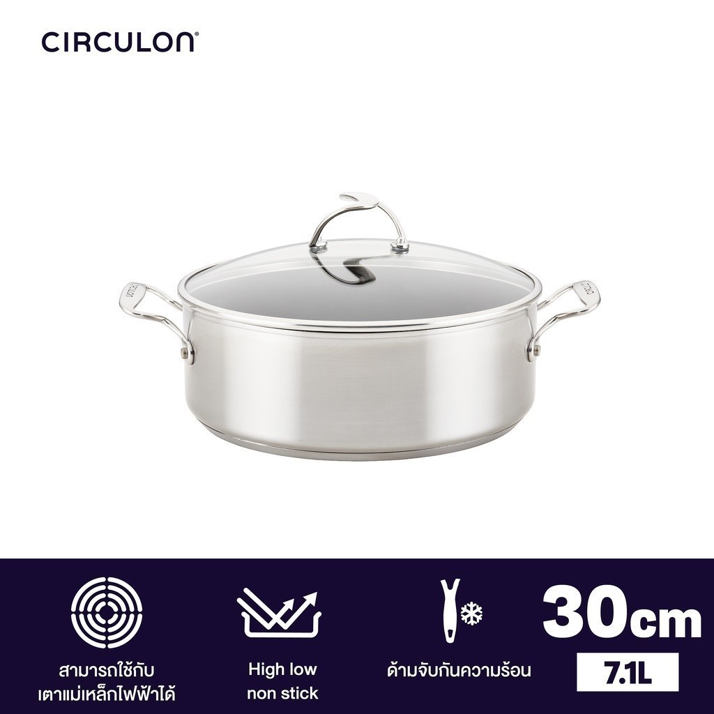 CIRCULON SteelShield S-Series หม้อต้มสแตนเลสสตีลเคลือบผิวลื่น 2 หู ขนาด 30 ซม./7.1 ลิตร พร้อมฝาแก้ว Stockpot (70054-T)