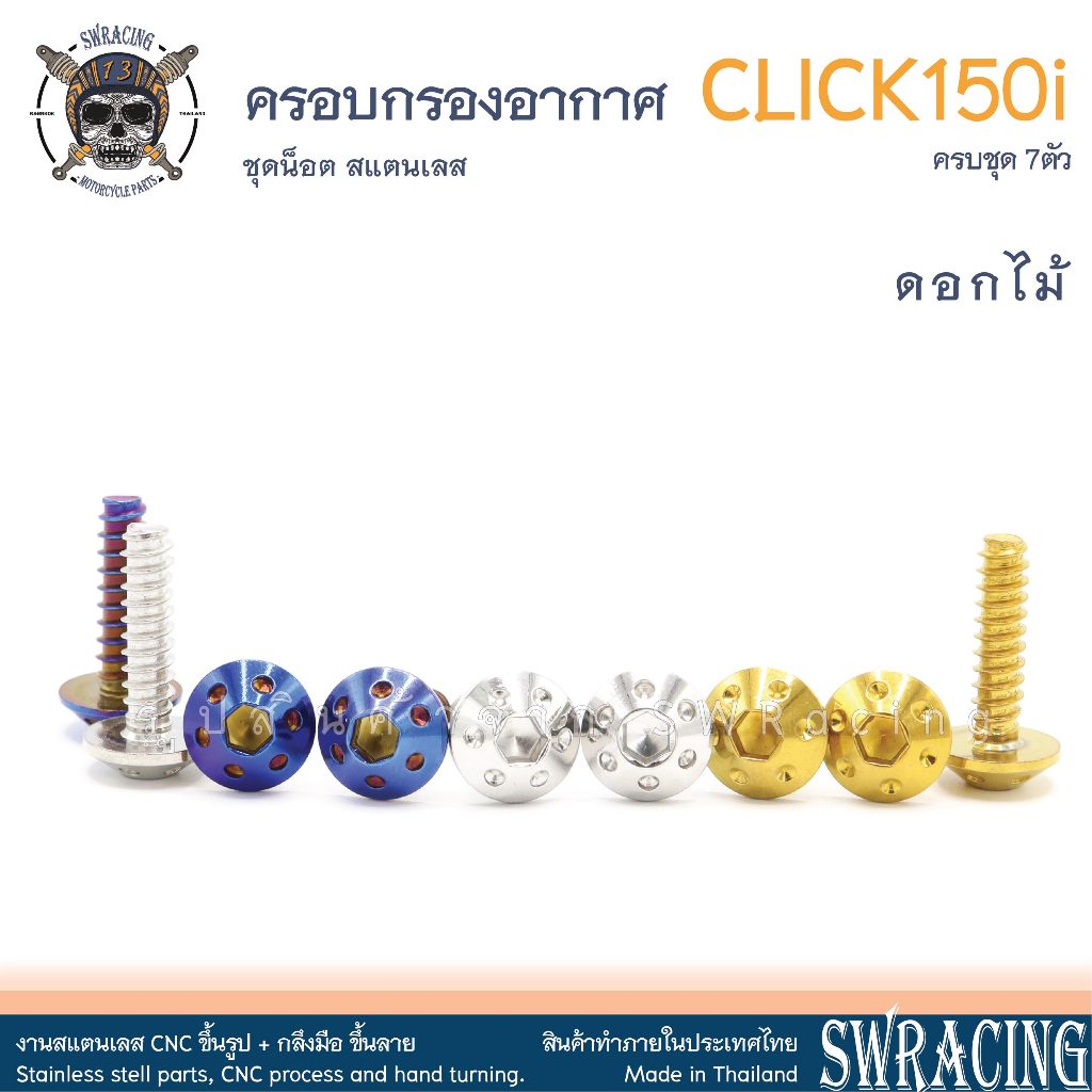 น็อตสแตนเลส ยึดครอบกรองอากาศ CLICK150i ครบชุด 7 ตัว