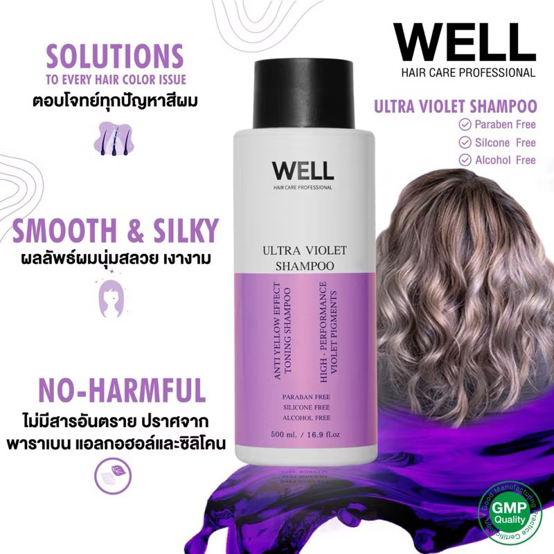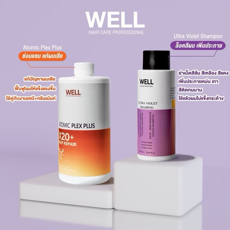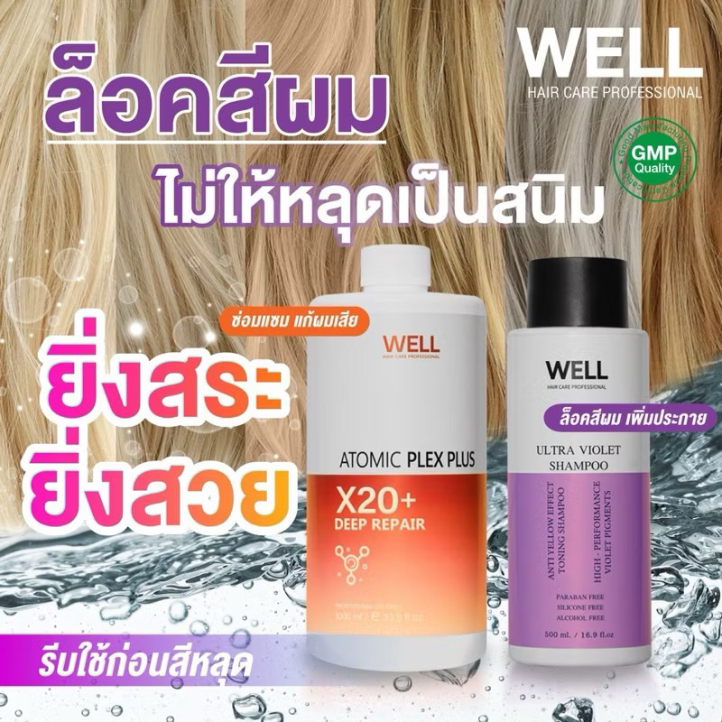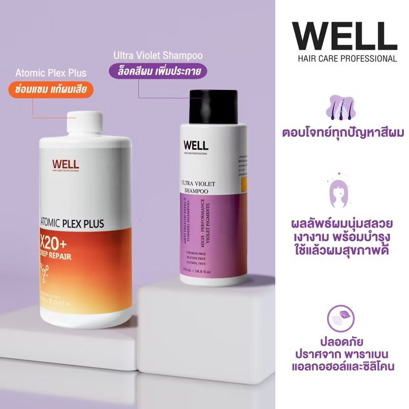 (COD) Well Hair Care เชื่อมพันธะแกนผม 1000 ml. / แชมพูม่วง ล็อคสีผม 500 ml.