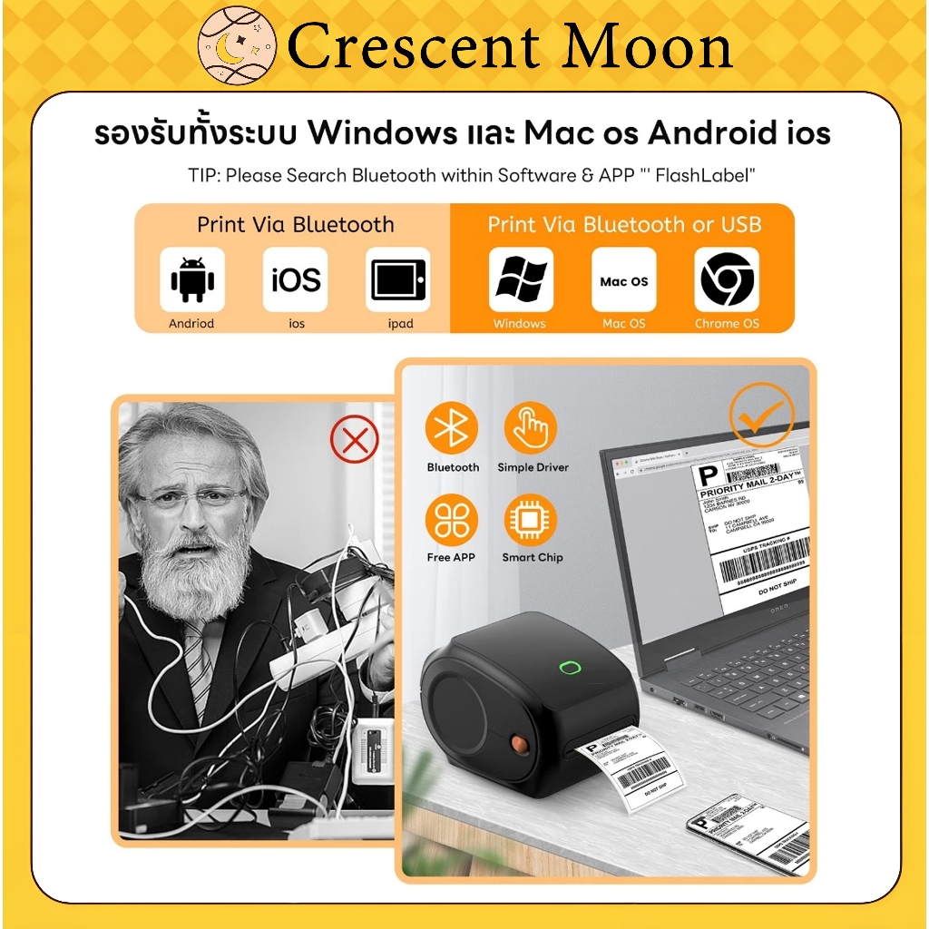 ฟังก์ชั่นบลูทู ธ โทรศัพท์มือถือ: รองรับเครื่องพิมพ์ฉลากการเชื่อมต่อบลูทู ธ เข้ากันได้กับ iOS และ Android คุณสามารถพิมพ์แท็กชื่อได้ทุกที่ทุกเวลาดาวน์โหลดแอพ “FlashLabel” เพื่อการพิมพ์ฉลากที่รวดเร็วและสะดวก