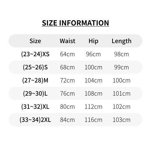 ขนาด: (31~32) XL เอว: 80 ซม. สะโพก: 112 ซม. ความยาว: 102 ซม