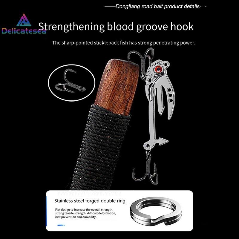 เหยื่อตกปลาสำหรับเบสมีตะขอร่องเลือดที่ลึกขึ้น ตะขอคู่ด้านบนมีอัตราการตีสูงและปลายเบ็ดมีความคมและมีพลังทะลุทะลวงที่แข็งแกร่งทำให้ปลาไม่สามารถหนีได้