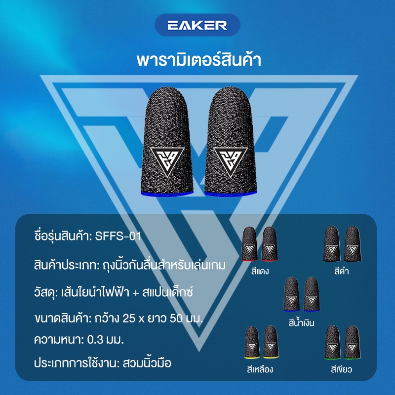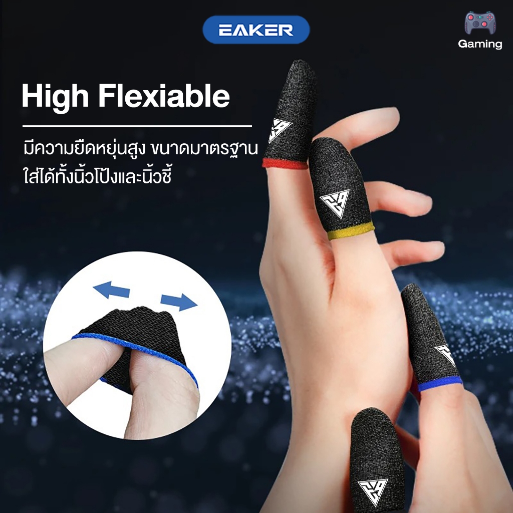 EAKER ถุงนิ้ว ถุงนิ้วเล่นเกม บางเฉียบเพียง 0.3 mm ลื่นไหลไม่สะดุด เล่นเกมสบาย กันเหงื่อ ผ้าใยนำไฟฟ้า