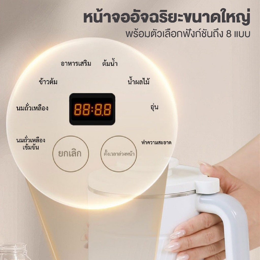 เครื่องทำน้ำเต้าหู้ อัติโนมัติ ทำนมถั่วเหลือง ปั่นร้อนและเย็นได้ มี8ฟังก์ชัน ต้มน้ำ อุ่นอาหาร ทำข้าวต้ม พร้อมดื่มทันที ไม่ต้องกรอง