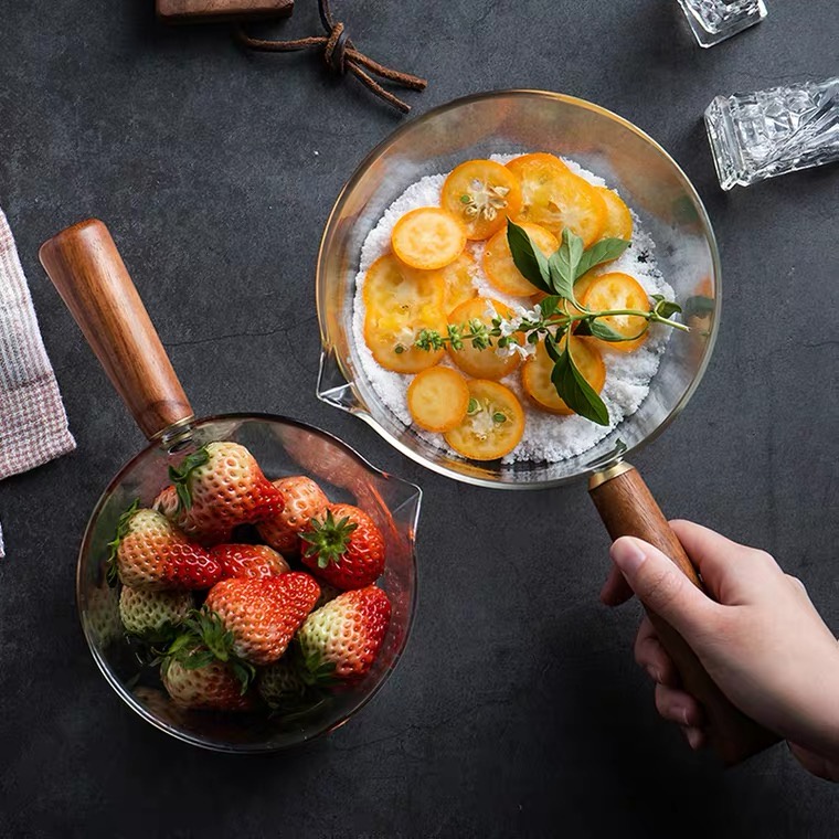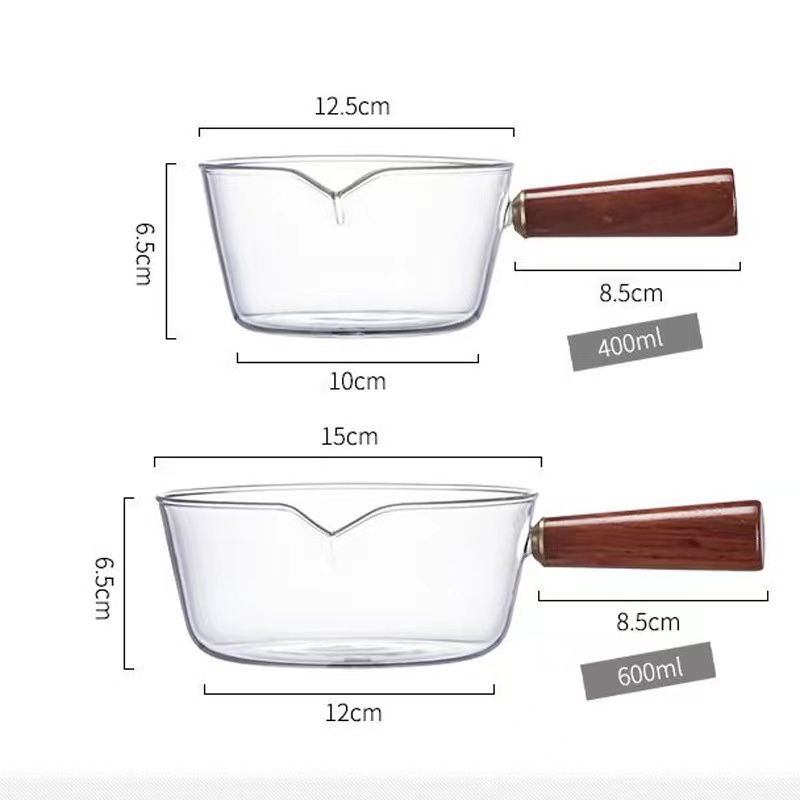 ความจุ600ml : 15*6.5*12ซม. ด้ามไม้ยาว8.5ซม