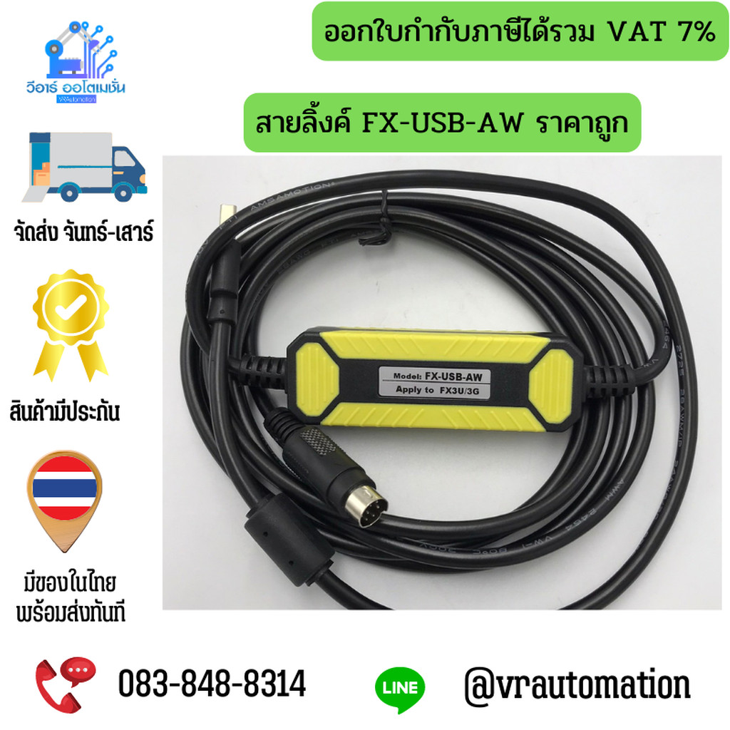 – การใช้งาน: สายลิ้งค์ FX-USB-AW ใช้สำหรับการเชื่อมต่อระหว่างพีซีและ PLC รุ่น FX series ของ Mitsubishi