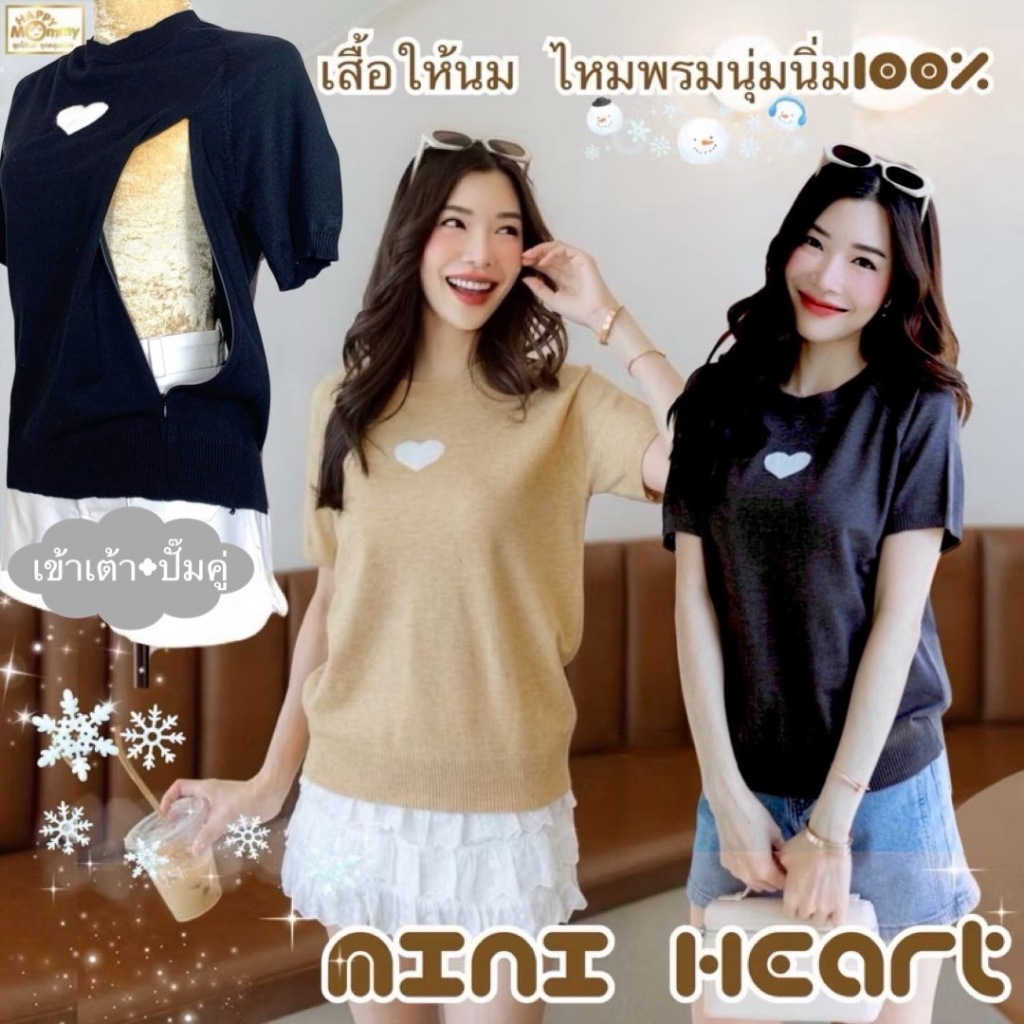 Mini Heart — #เสื้อให้นมไหมพรมเนื้อนิ่มมม % สัมผัสนิ่มน่าใส่ ไม่ระคายผิวคุณแม่และทารก ทอขึ้นลายมินิฮาร์ทบอกรักลูกและคุณสามีทุกวัน