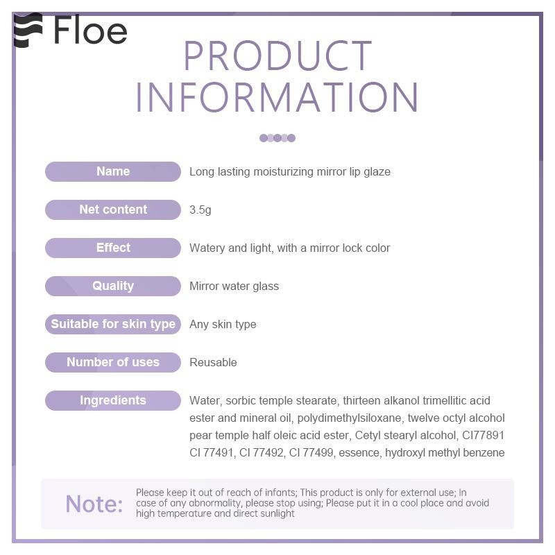ยินดีต้อนรับสู่ Floe storeMirror Face Lip Glaze ลิปกลอสลิปกลอสที่ให้ความชุ่มชื้นยาวนานฟิล์มอย่างรวดเร็วขึ้นรูปลิปกลอส Retro Tone Lip Glaze
