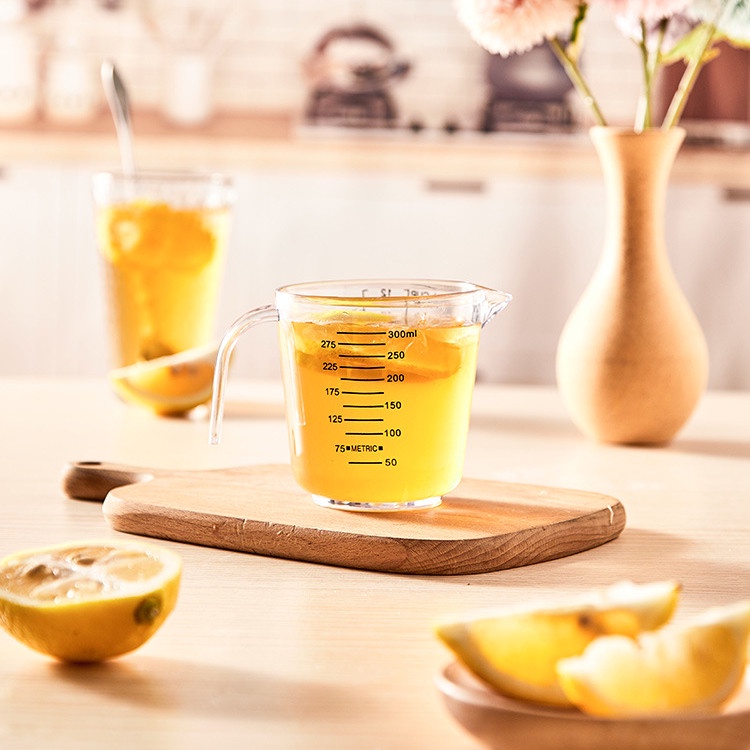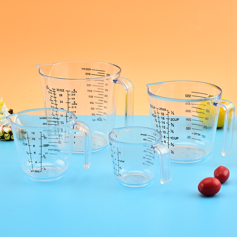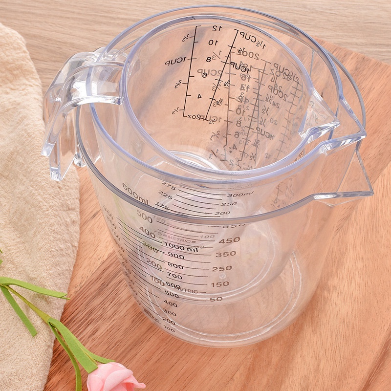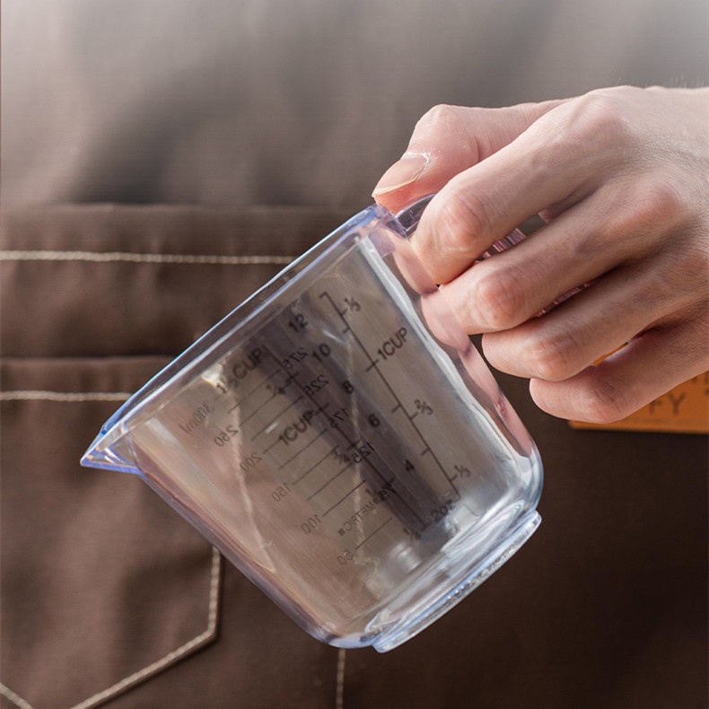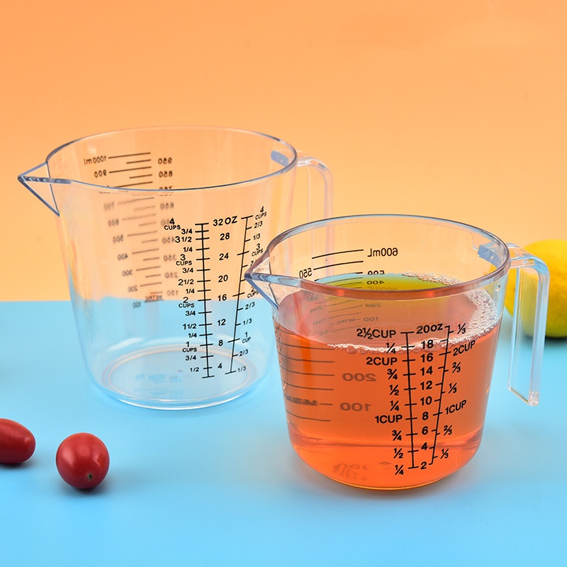 อุปกรณ์ตวงเบเกอรี่ แก้วตวงมาตรฐาน มีสเกลวัดอักษรปริมาณสีดำ และสีแดง