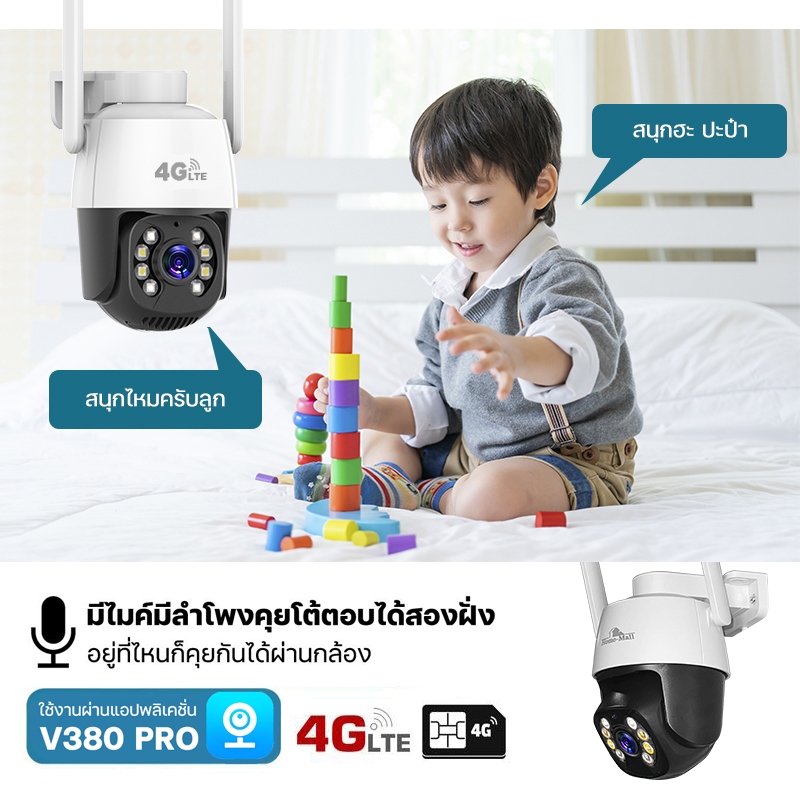 กล้องวงจรปิดใส่ซิม4G กันน้ำ กล้องวงจรปิดติดภายนอก ตรวจจับความเคลื่อนไหว พูดคุยโต้ตอบ ภาพสี24ชม. ดูผ่านมือถือ App V380pro