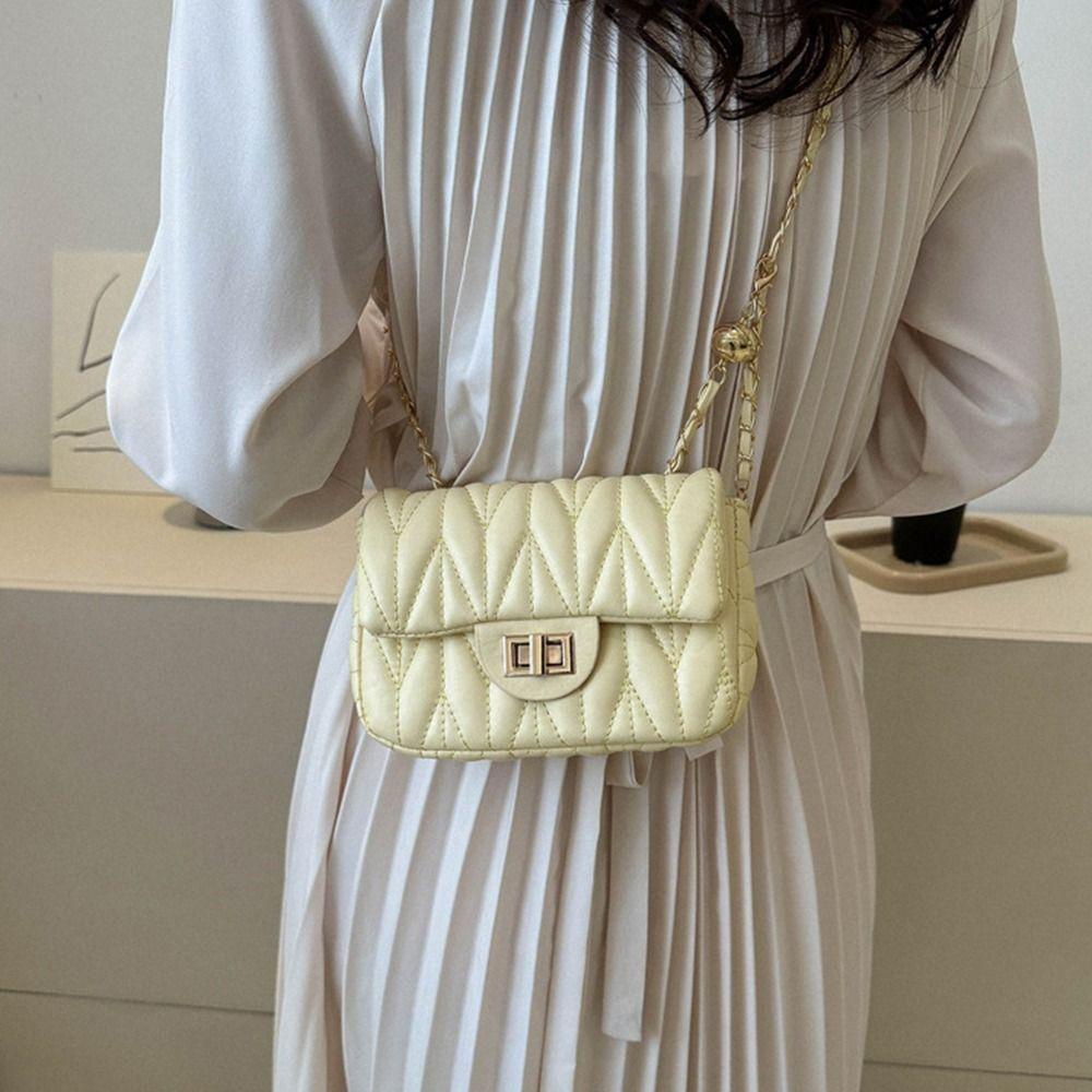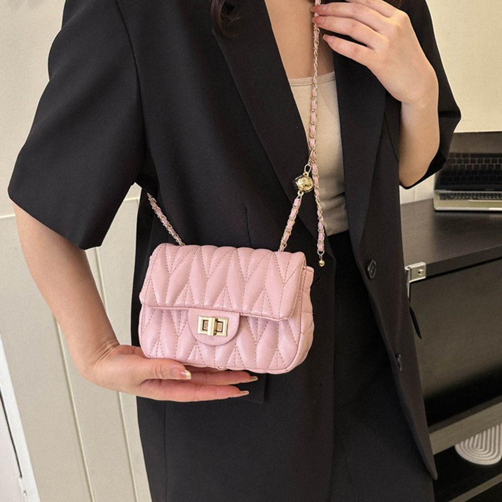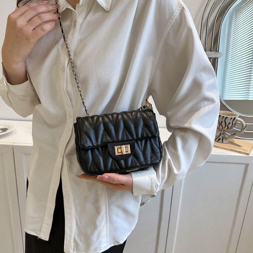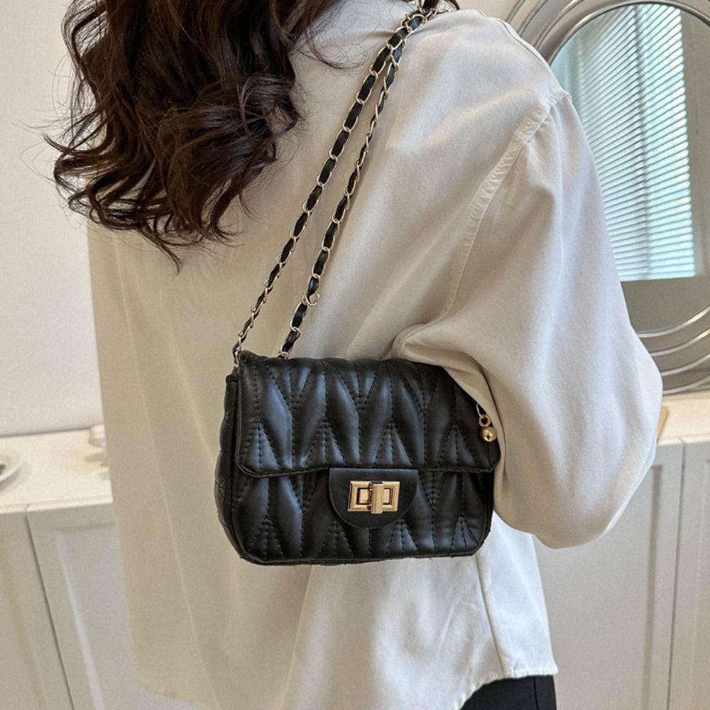 กระเป๋าสะพายใต้วงแขนกระเป๋าสะพายข้างกระเป๋าสะพายข้างกระเป๋าถือ Rhombus ปักหนัง PU โซ่แฟชั่นหรูหรา