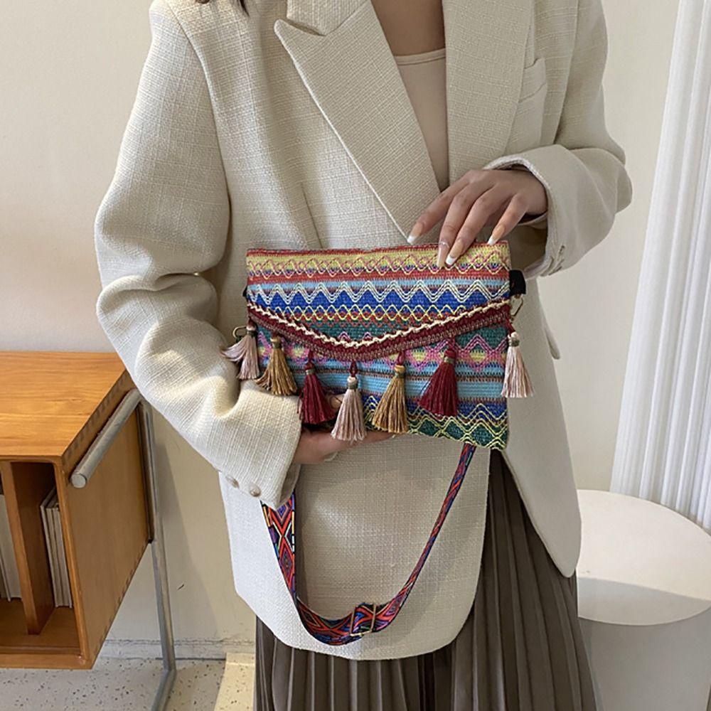 กระเป๋าสะพายเดี่ยวกระเป๋าสะพายกระเป๋าใต้วงแขนกระเป๋าถือ Crossbody Folk Style Tassels ผู้หญิงเทรนด์แฟชั่น