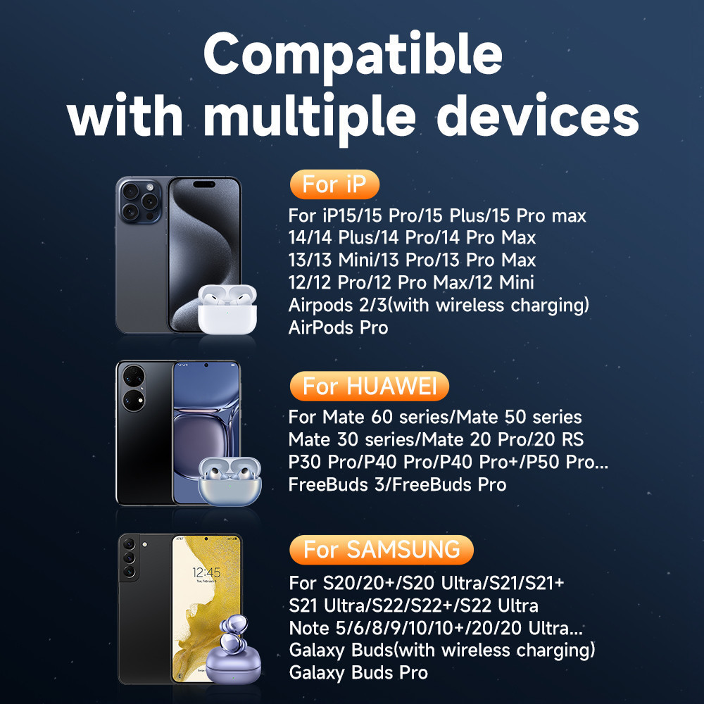 – เคสโทรศัพท์ที่มีความหนา, บัตรเครดิต รวมไปถึงบัตรต่างๆที่มีชิพหรือวัสดุโลหะอิ่นๆ อาจจะส่งผลต่อประสิทธิภาพในการชาร์จ