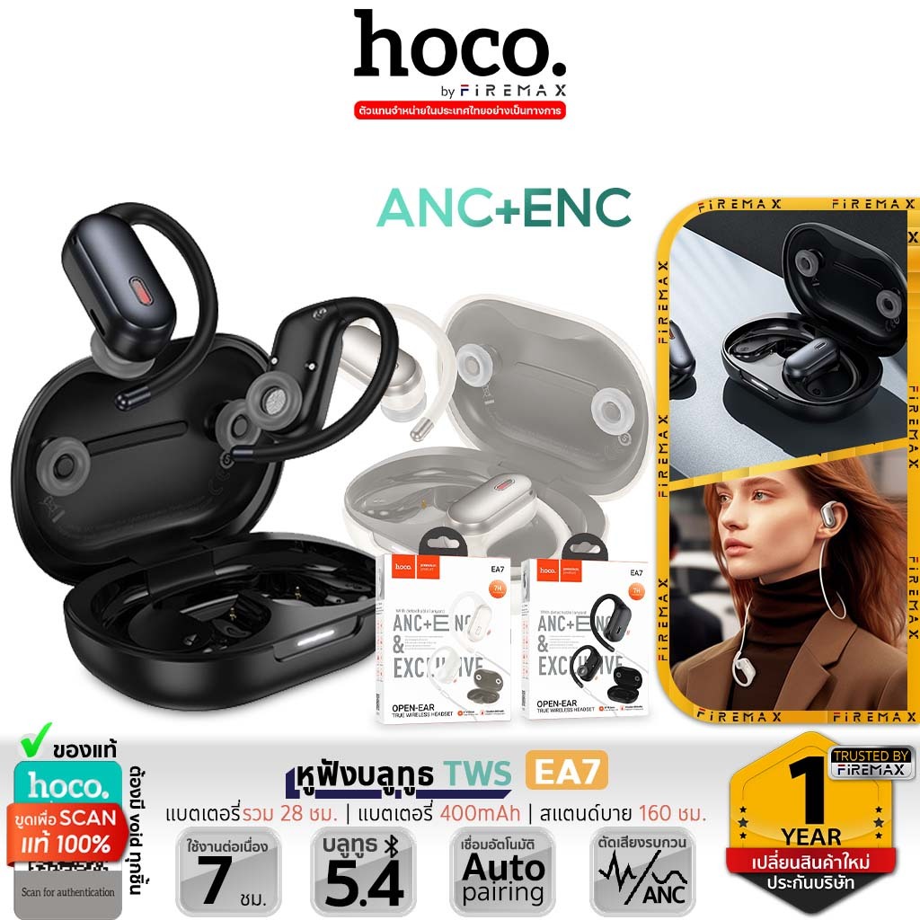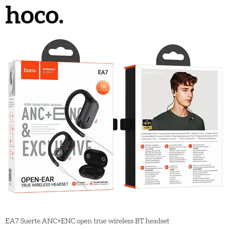 HOCO EA7 หูฟังไร้สาย TWS แบบคล้องหู ระบบตัดเสียงรบกวน ANC + ENC แบตอึด 7 ชม. Bluetooth 5.4 หูฟังบลูทูธ