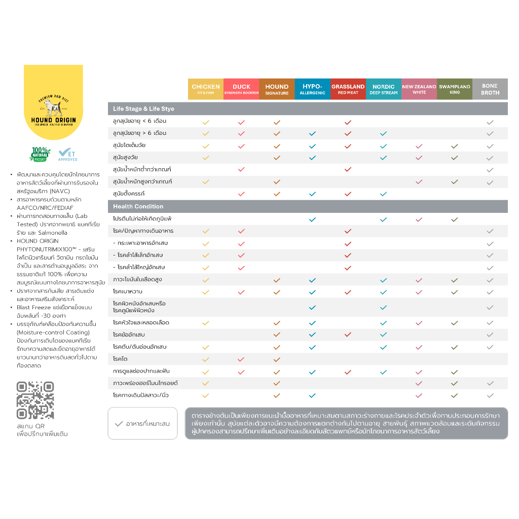 คุณสามารถคำนวณและอัพเดทปริมาณการทานตามอายุ น้ำหนัก และระดับกิจกรรมของสัตว์เลี้ยงของคุณได้เองโดยใช้โปรแกรมการคำนวณของเรา https://th.houndorigin.com/feeding ปริมาณที่คำนวณได้เป็นปริมาณแนะนำที่ค่อนข้างแม่นยำ แต่อย่างไรก็ตาม การทานของสุนัขอาจแตกต่างออกไปจากนี้ตามความต้องการเฉพาะตัว เช่น ระบบเผาผลาญ สิ่งแวดล้อม การเลี้ยงดู สรีระ หรือกิจกรรมในแต่ละวัน คุณพ่อคุณแม่สามารถปรับปริมาณการทานอาหารเองได้ตามความเหมาะสม