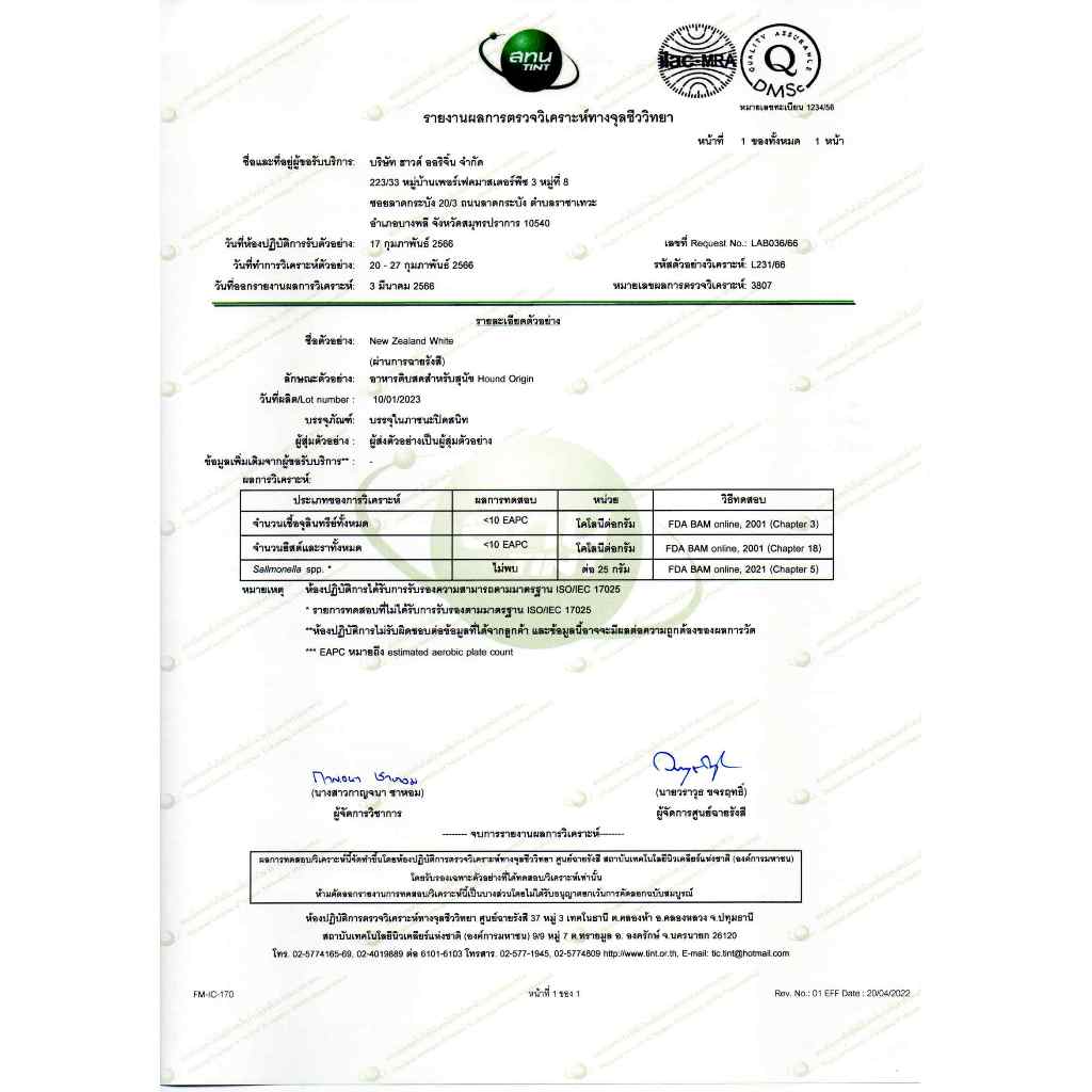 ทะเบียนอาหารสัตว์เลขที่ 0107660720